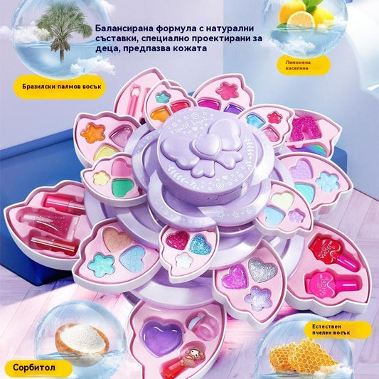 👸💄🎁🔥Купете едно, вземете второ безплатно🔥Детски въртящ се козметичен комплект с флорален мотив, играчки за грим, аксесоари за принцеси, коледни подаръци