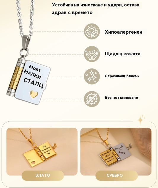 Колие "Моята книга", подходящо за дъщеря, син или приятелка, подарък за рожден ден, бижута за любов за завършване
