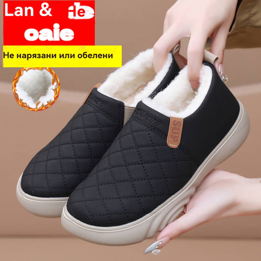 👟【35-41】Нови зимни кадифени и дебели неплъзгащи се обувки за майки, модерни и универсални топли памучни обувки, снежни ботуши с мека подметка