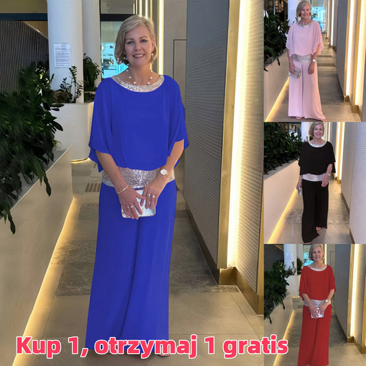 🥰【S-3XL】2025 Nowy zestaw spodni z szeroką nogawką z cekinami i okrągłym dekoltem