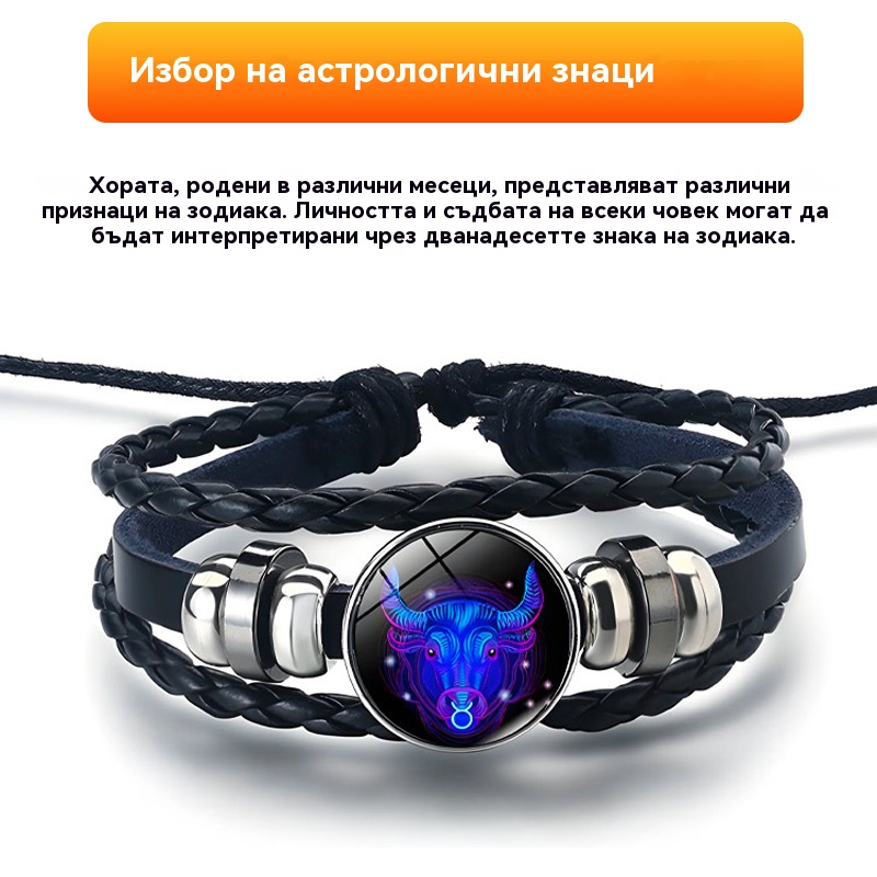 【Купете 1 и вземете 1 безплатно】🌙Светяща гривна на зодиака|Защитна гривна от плетена кожа|Привлича късмет и просперитет