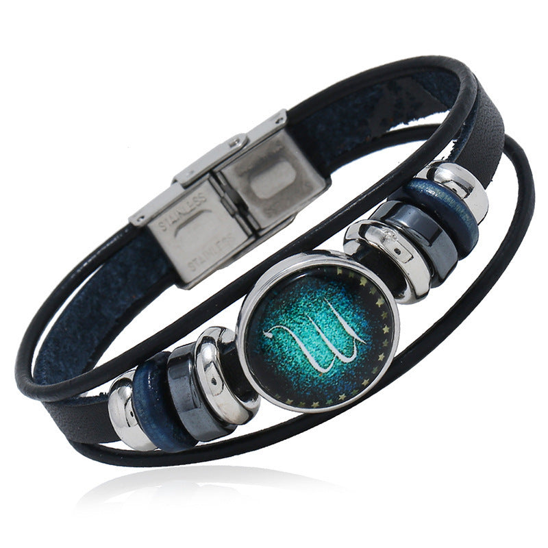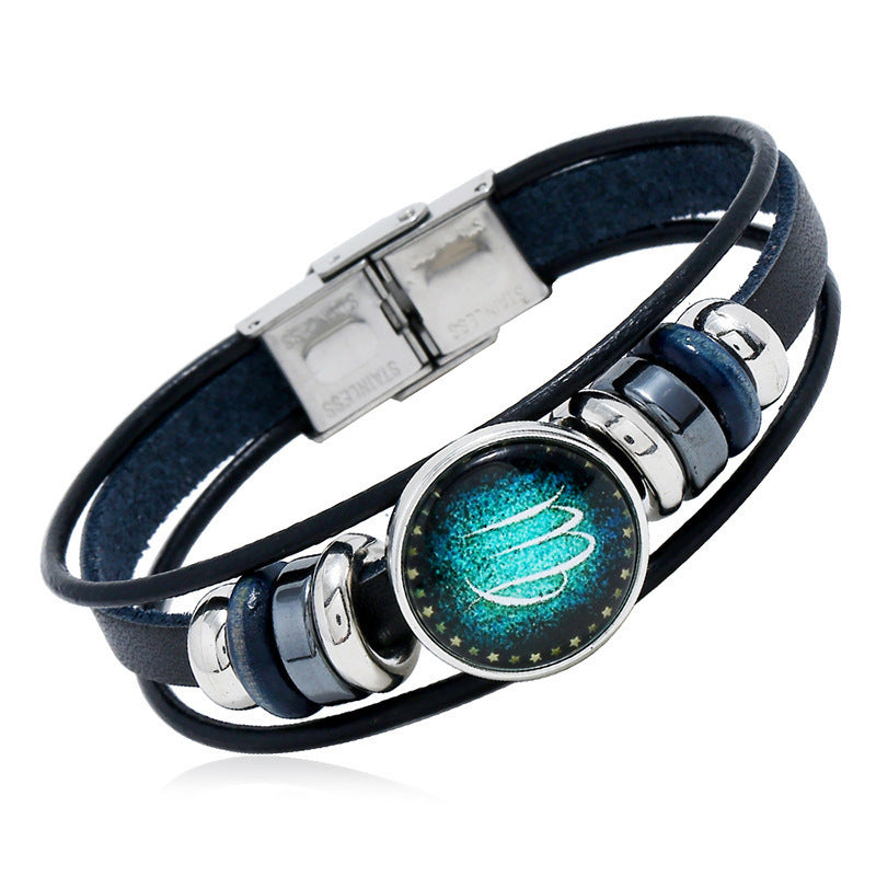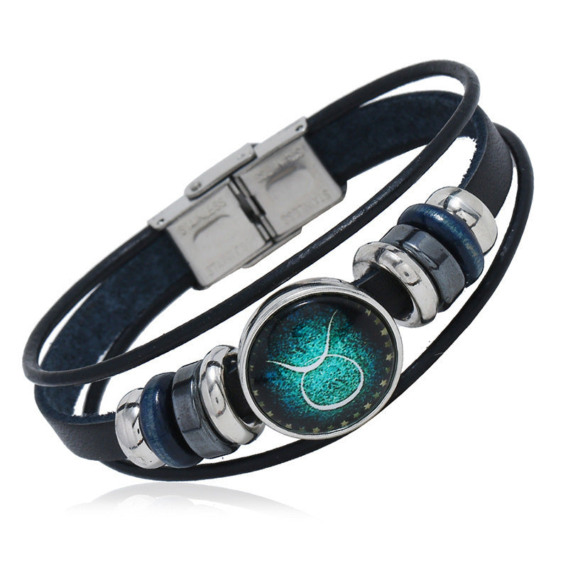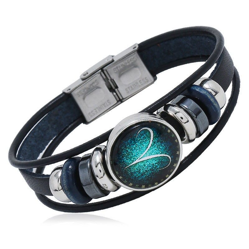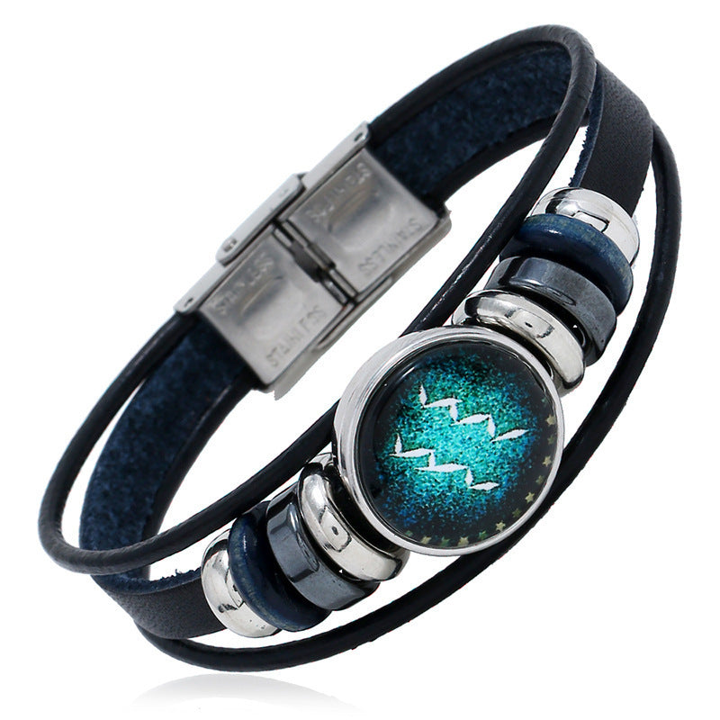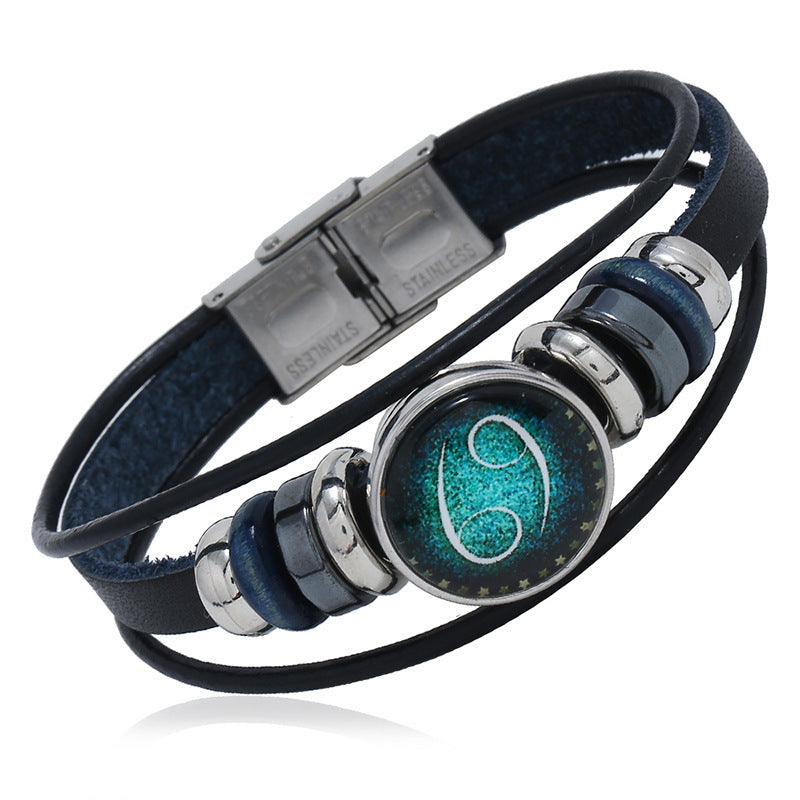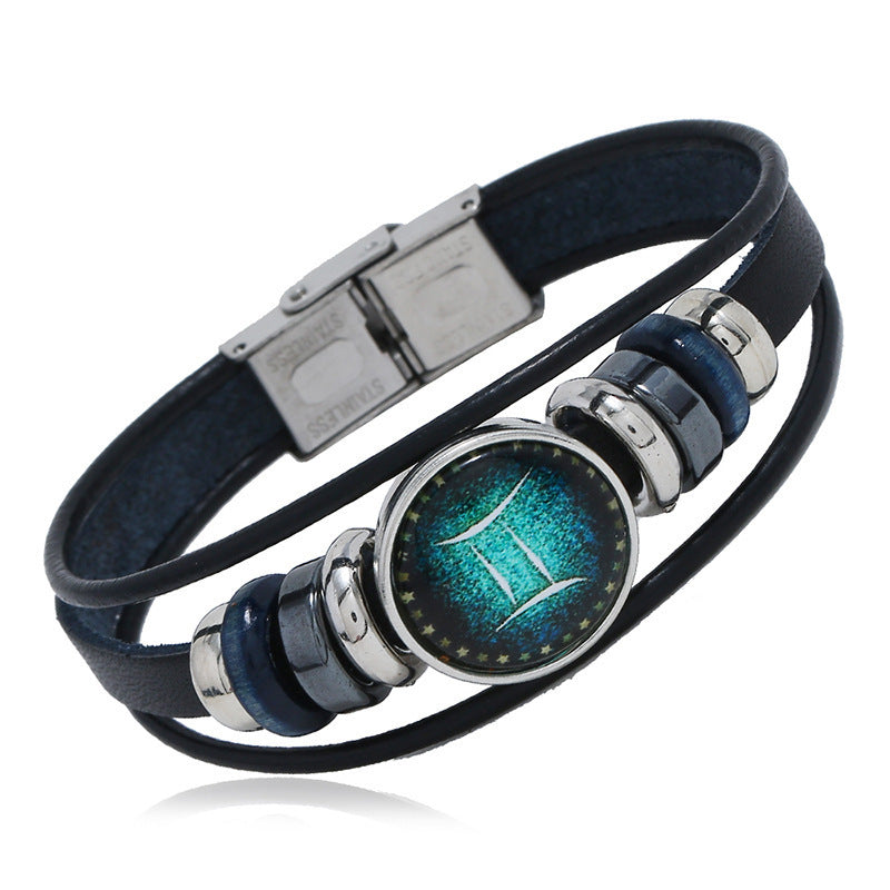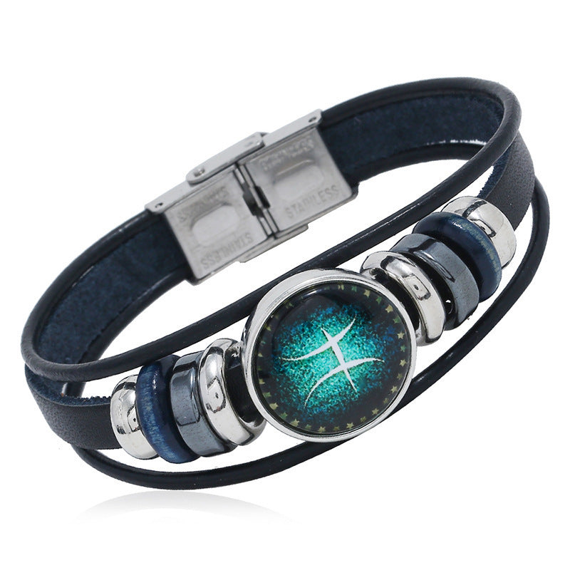 【Купете 1 и вземете 1 безплатно】🌙Светяща гривна на зодиака|Защитна гривна от плетена кожа|Привлича късмет и просперитет
