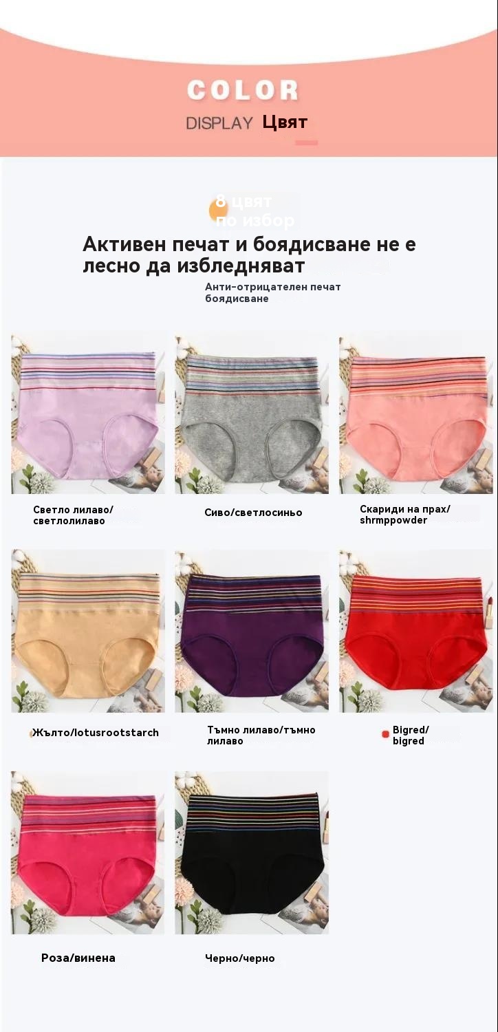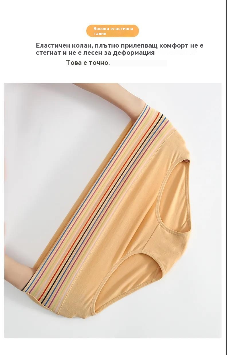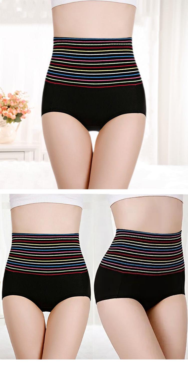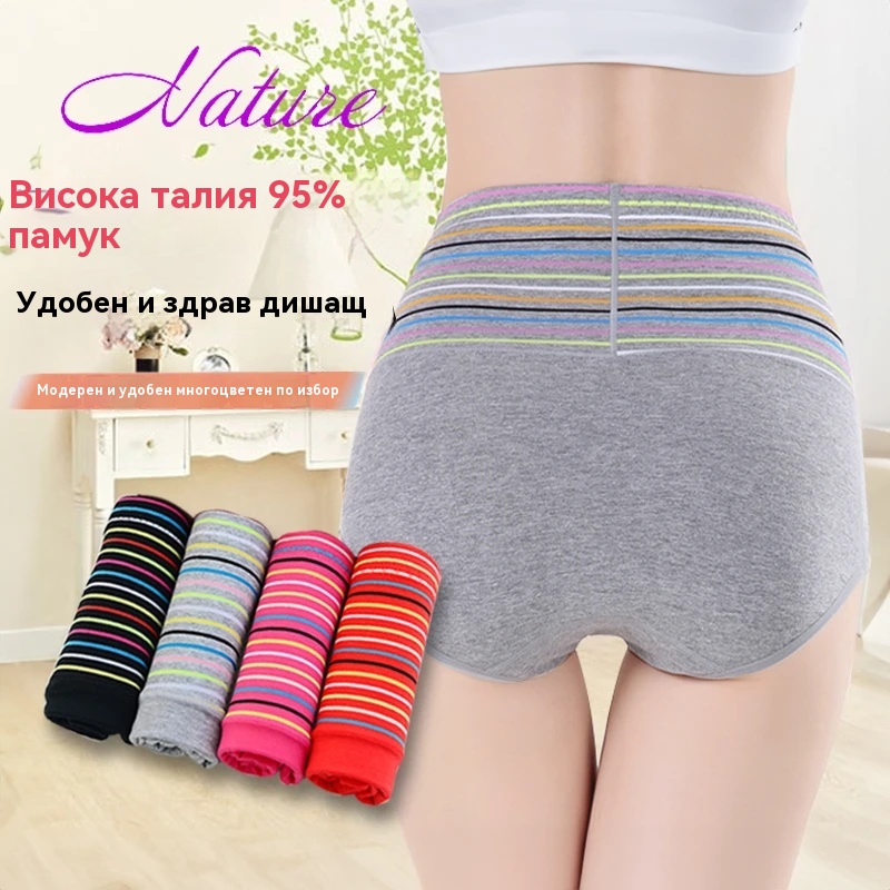 【купете 3 безплатни 3】【XL-3XL】Дамско бельо от раиран памук с висока талия и контрол на корема