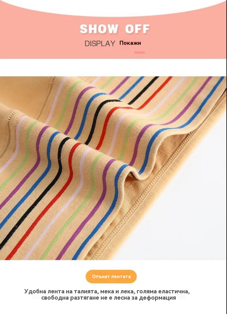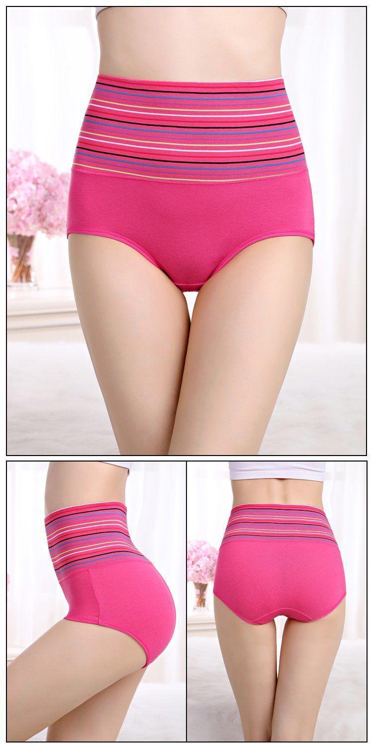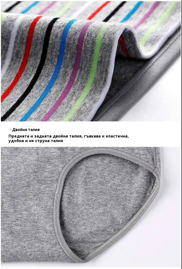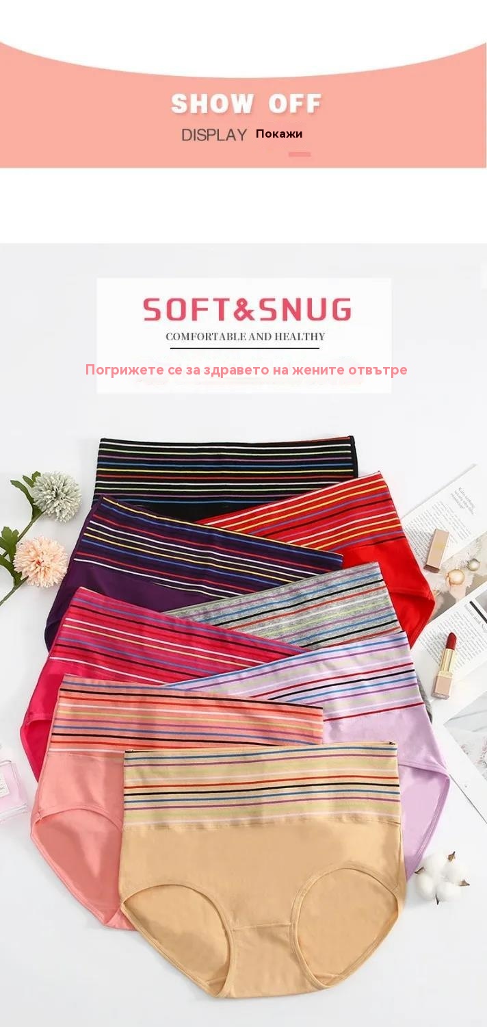 【купете 3 безплатни 3】【XL-3XL】Дамско бельо от раиран памук с висока талия и контрол на корема