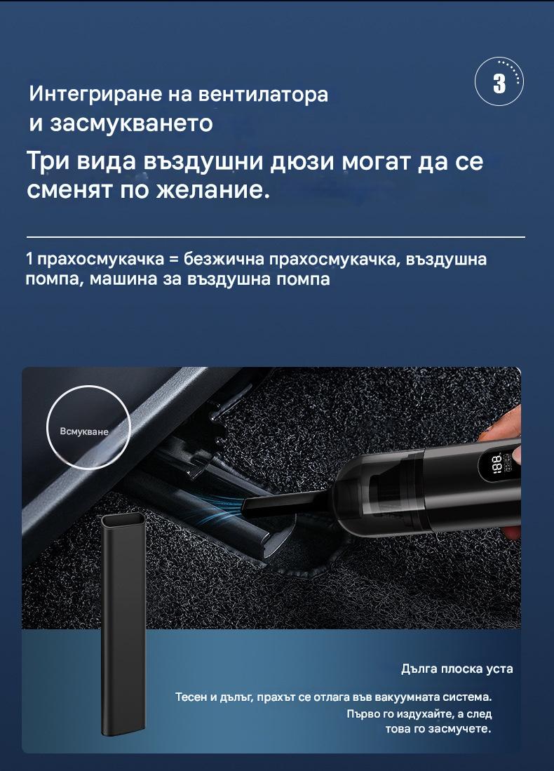 ⚡🚗【Купете 1, вземете 1 безплатно】 Мощна безжична прахосмукачка за кола 13 000Pa – Дълбоко почистване, по всяко време и навсякъде!