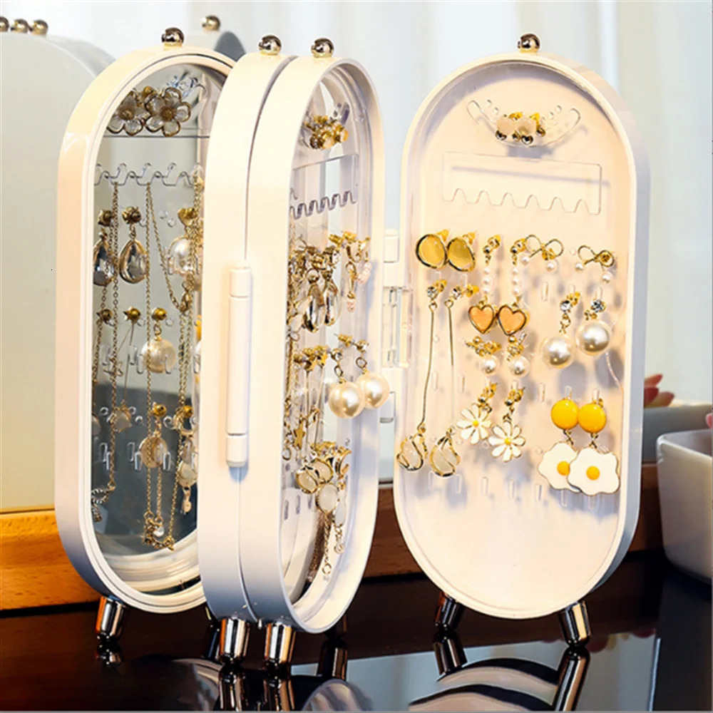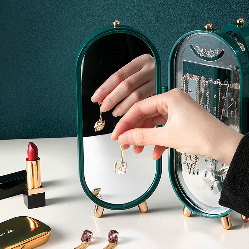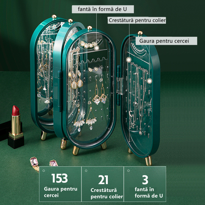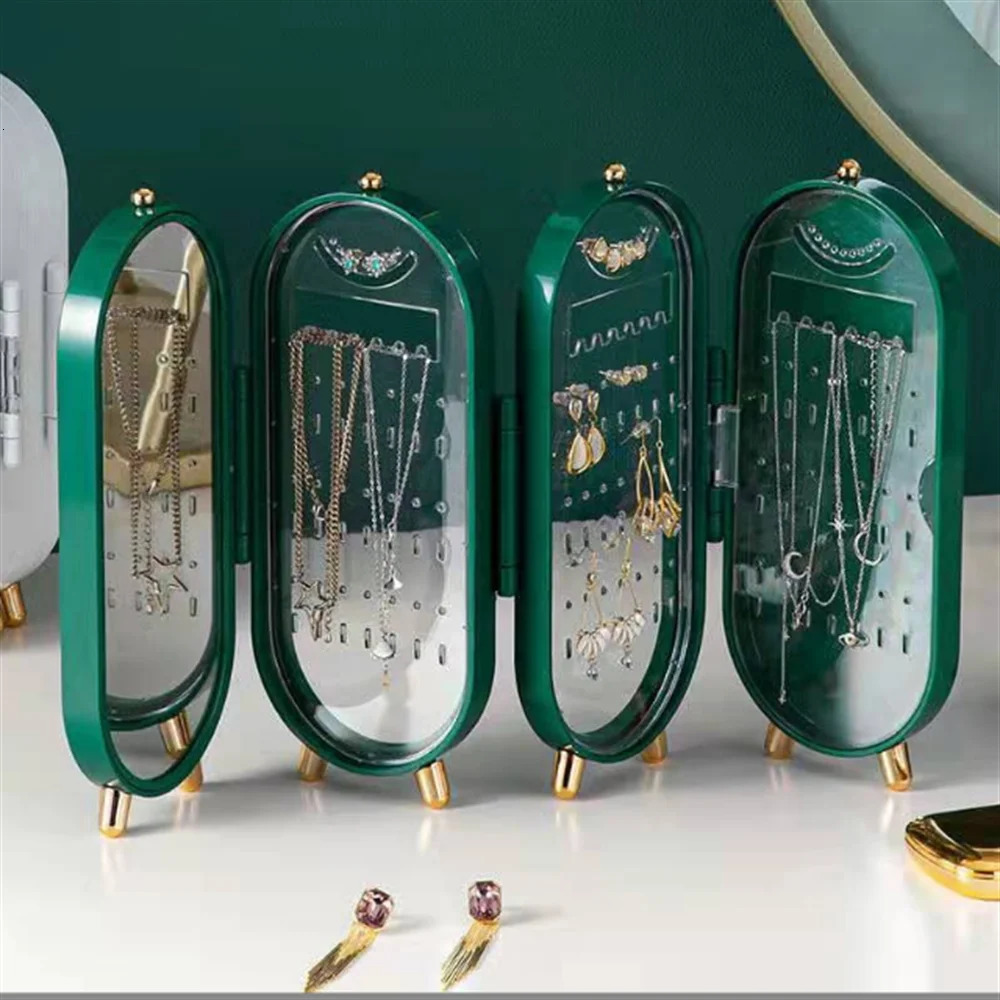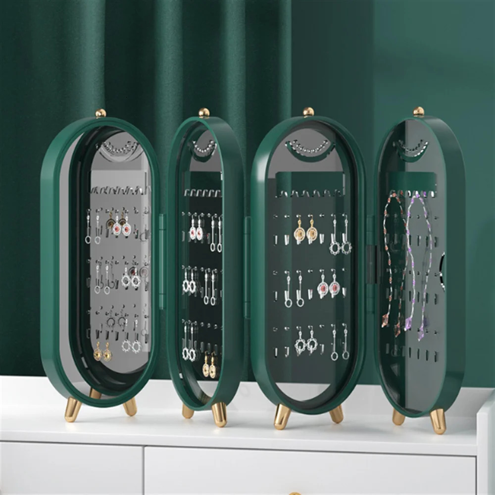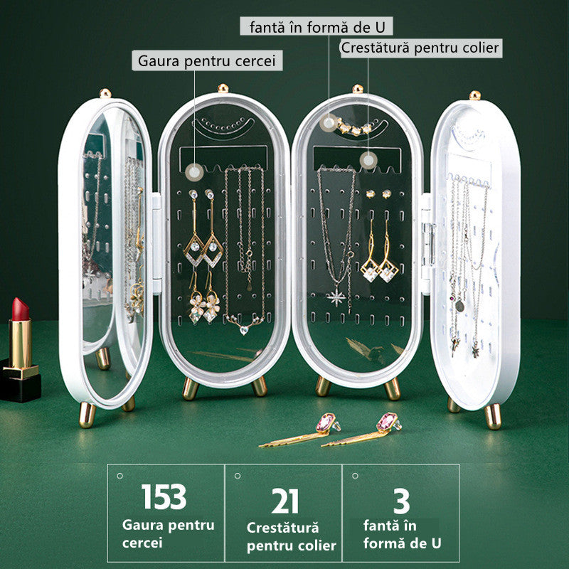 废✨Сгъваема кутия за бижута с 4 врати и огледало, за да поддържате бижутата си организирани