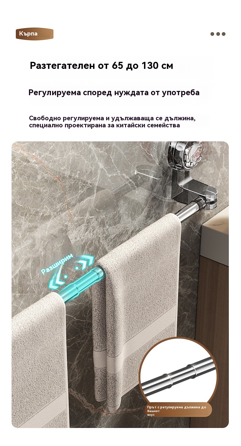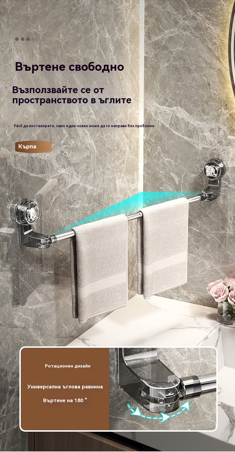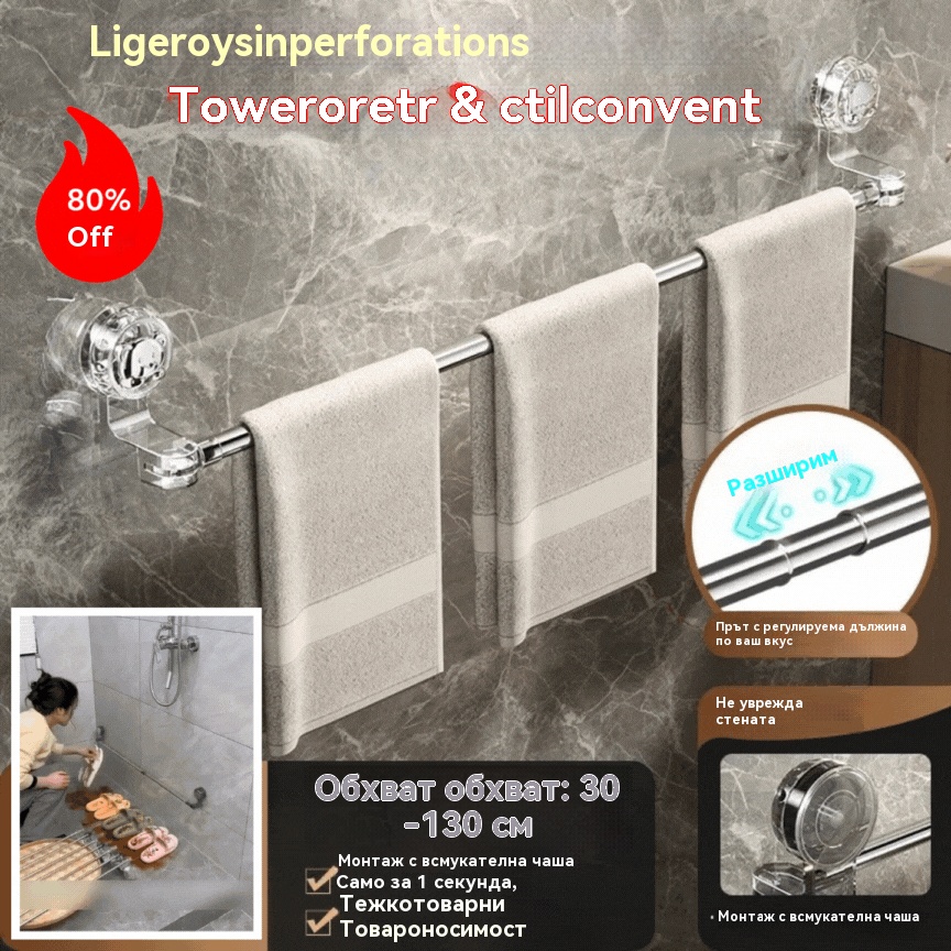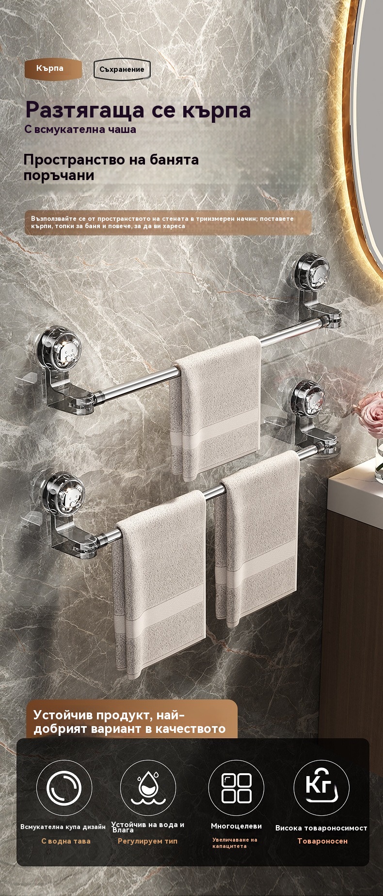 ✨🚿Лек дизайн без пробиване — Прибираща се поставка за кърпи с вендуза