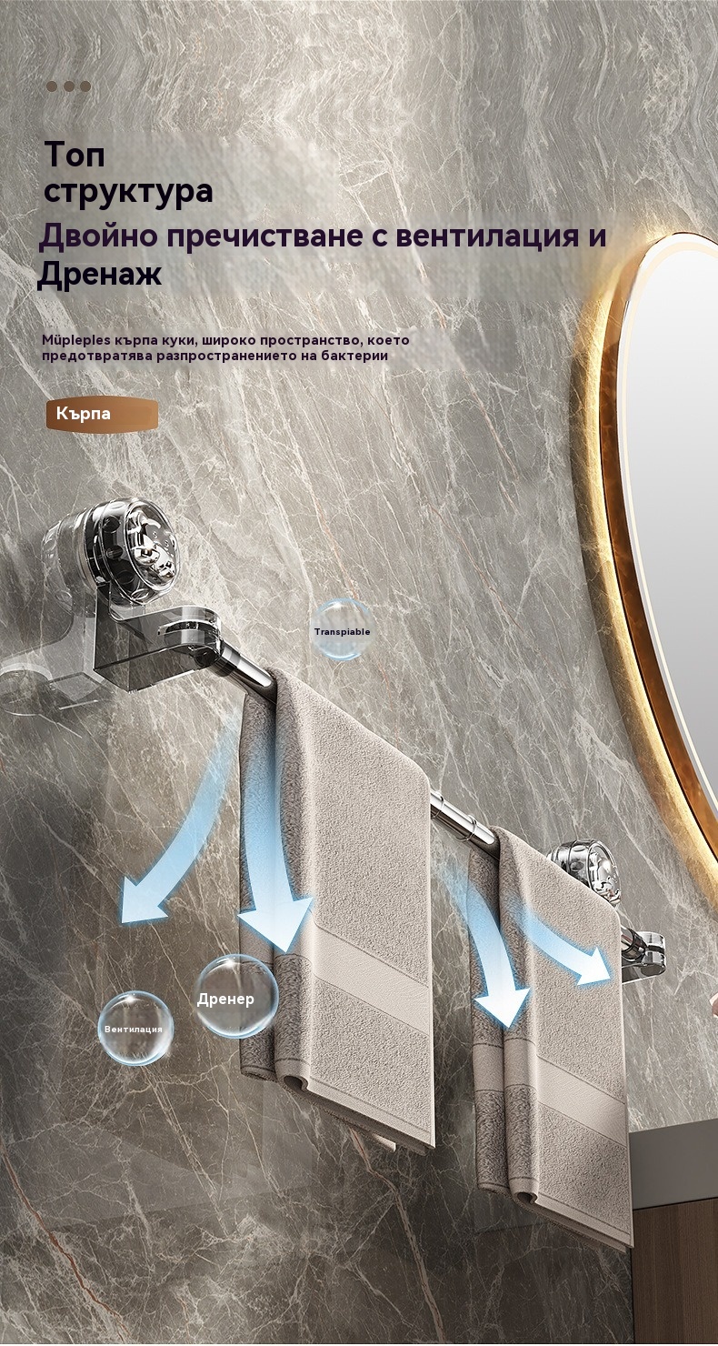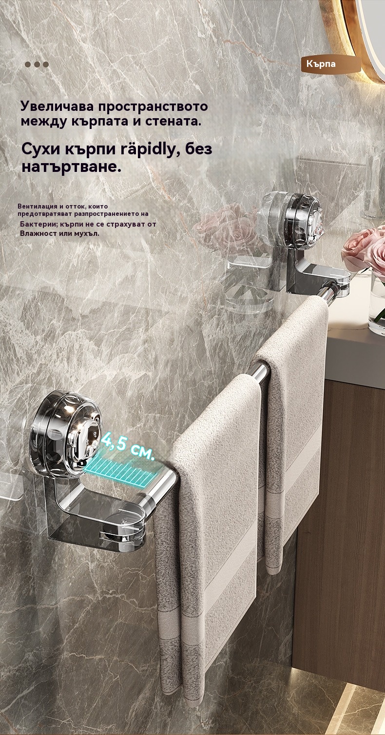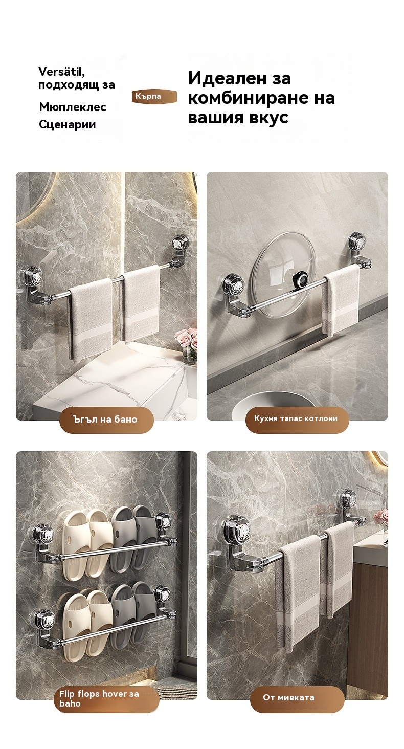 ✨🚿Лек дизайн без пробиване — Прибираща се поставка за кърпи с вендуза