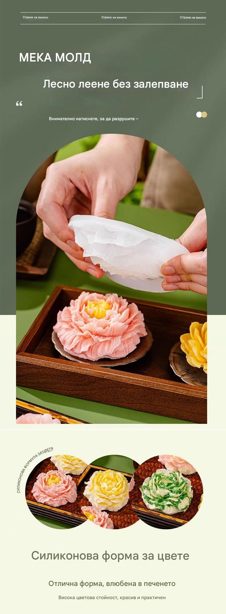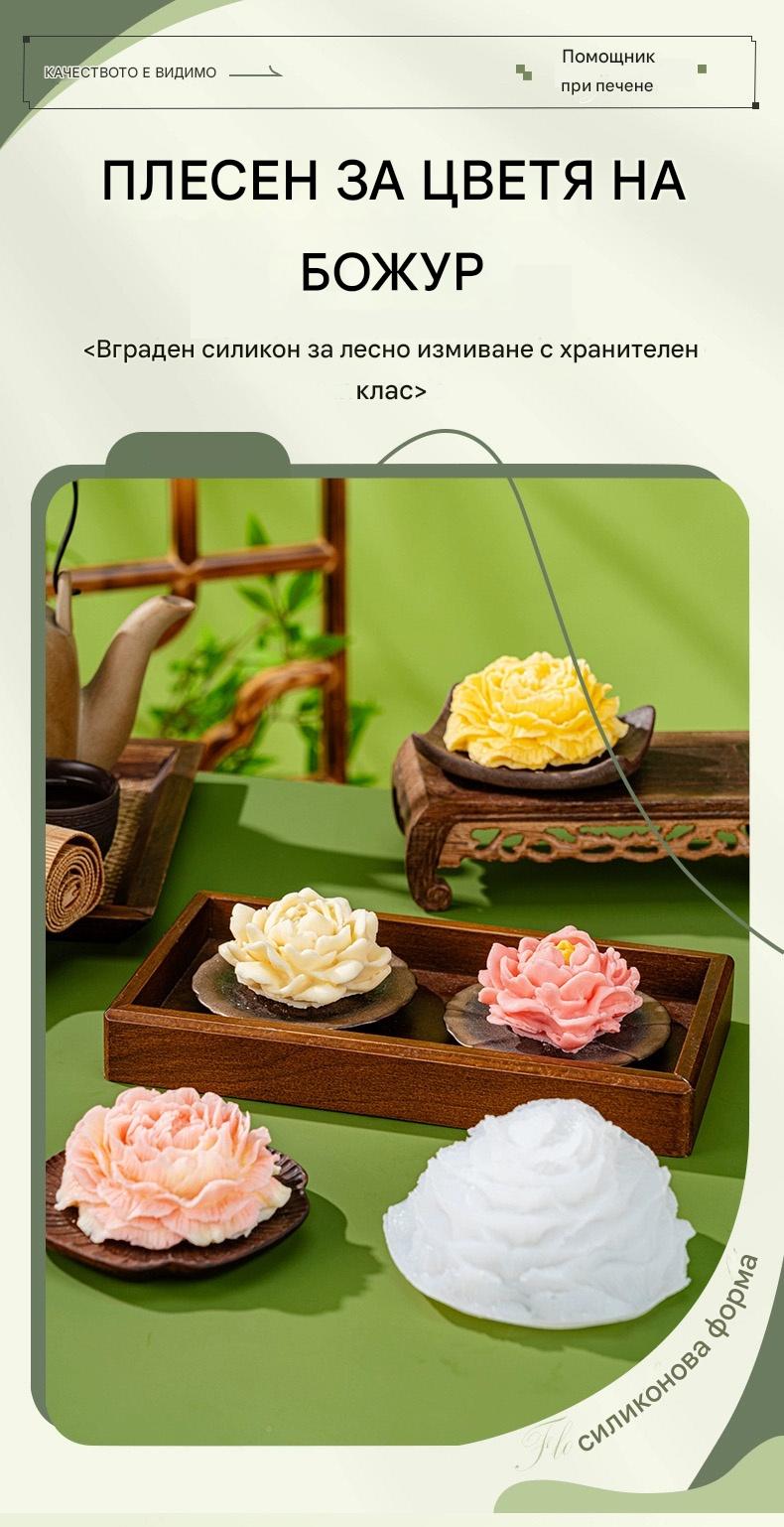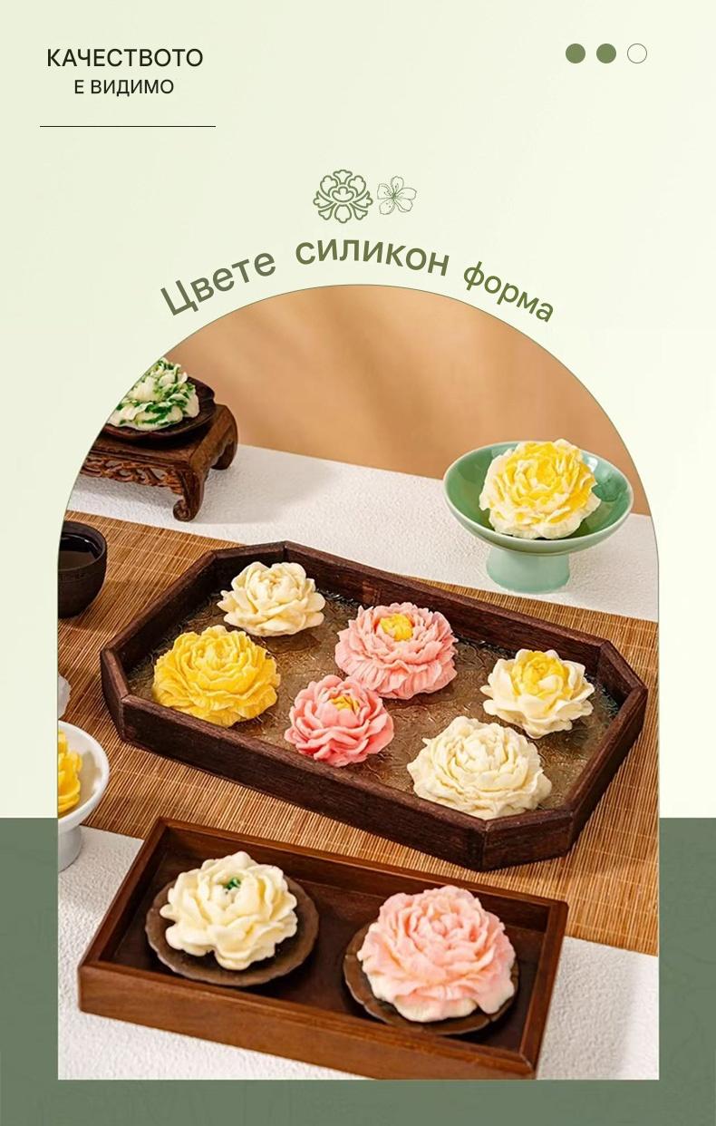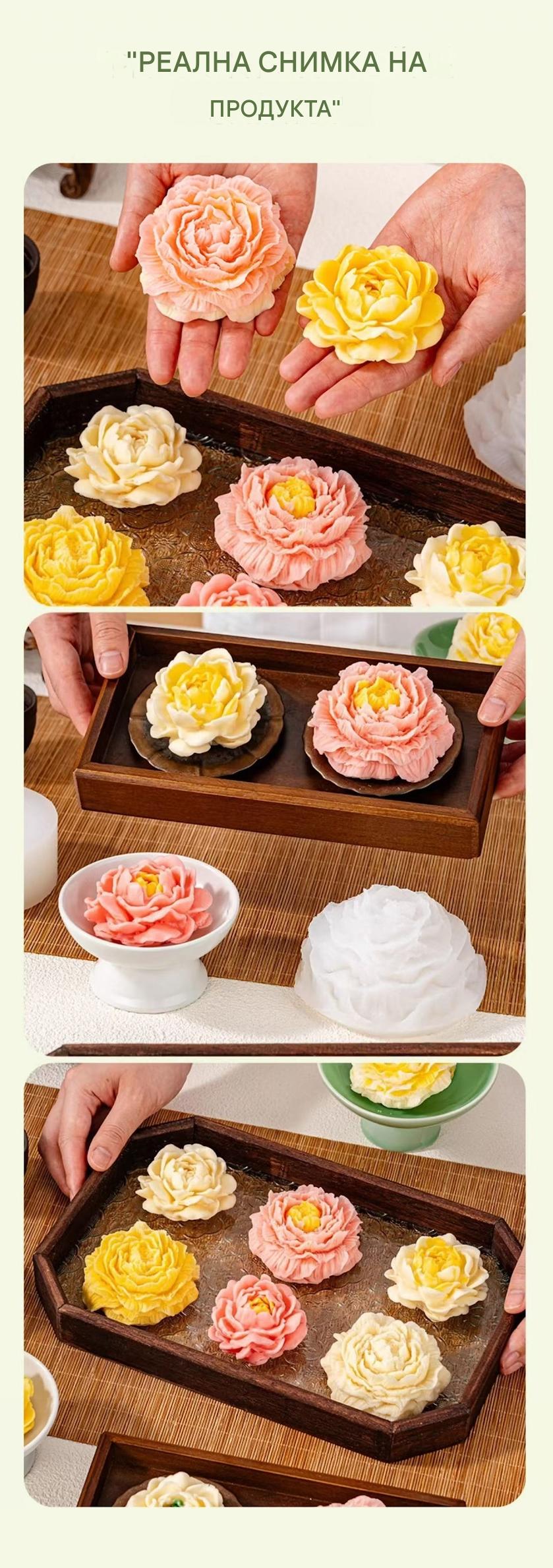 🌸Голяма, средна и малка 3D силиконова форма за цвете божур, свещ за ароматерапия „Направи си сам“, дифузер за кола, декорации с камъни и лепило