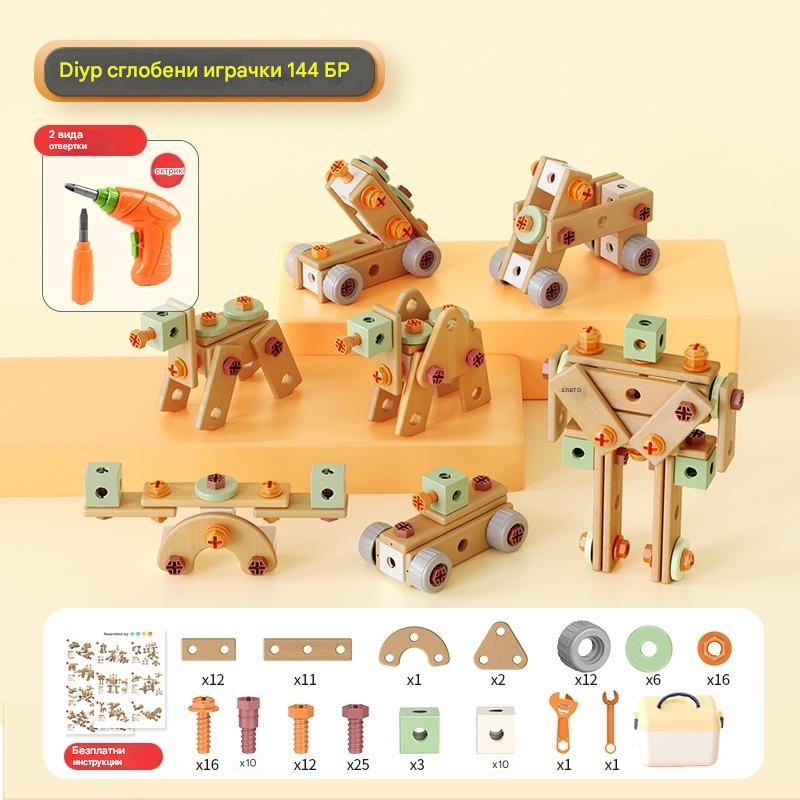🎁【55/100/144 бр.】Строителни блокове във формата на кутия за инструменти, електрически бормашини, образователни играчки и детски играчки