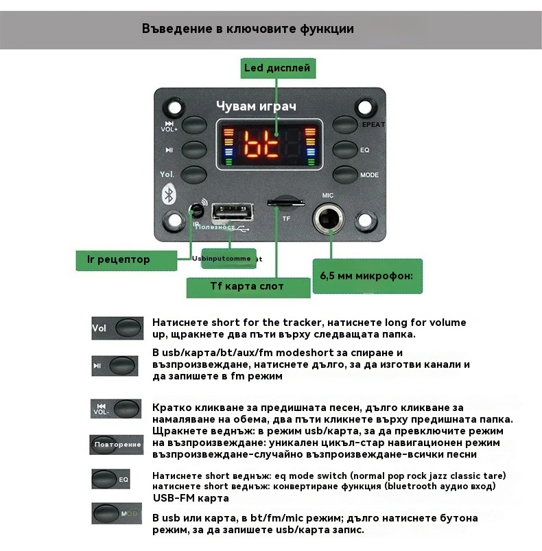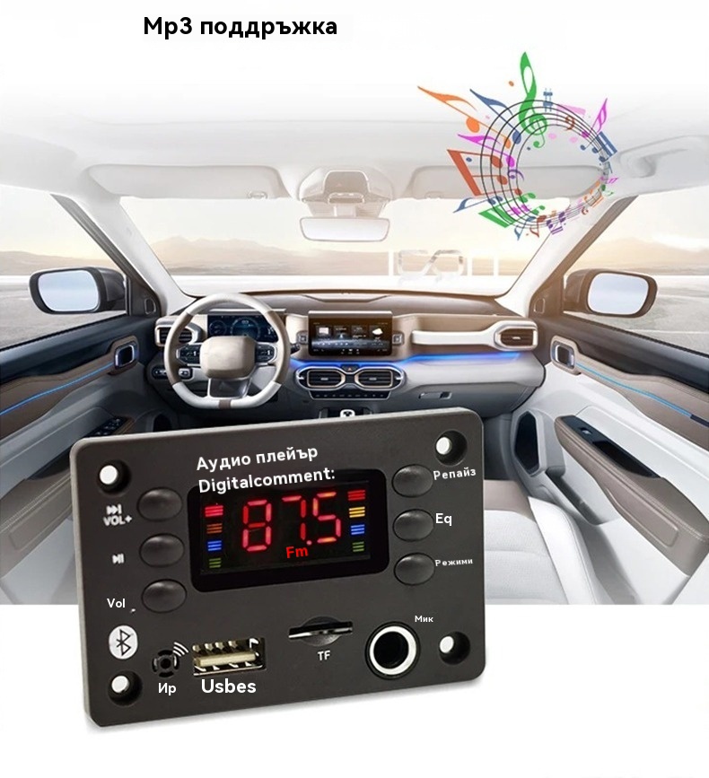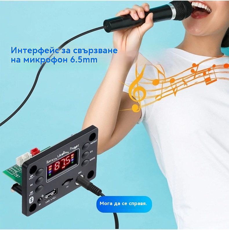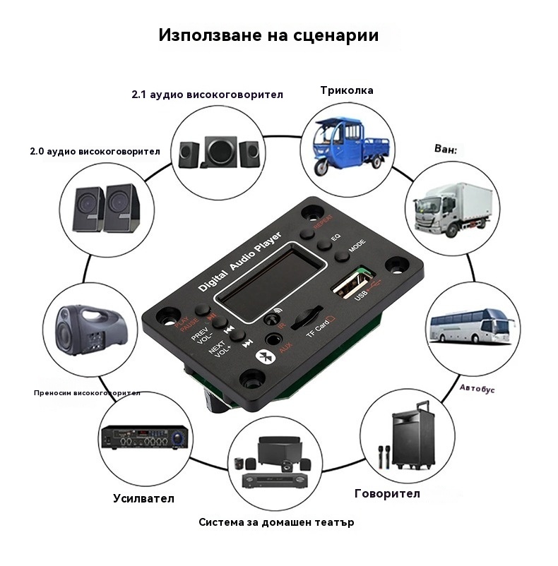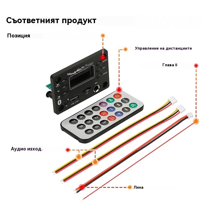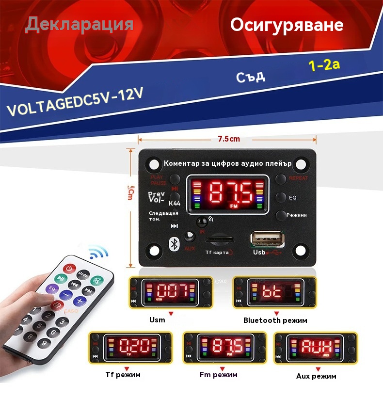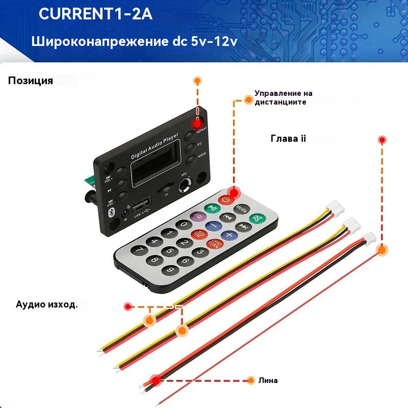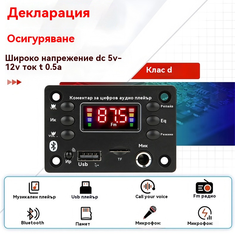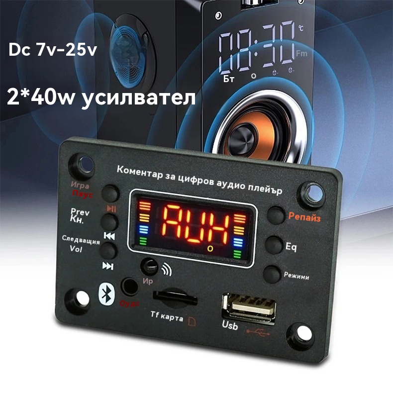 🎵 Bluetooth усилвател и декодер за високоговорители, с безжично дистанционно управление, USB връзка и функция за запис🎙️