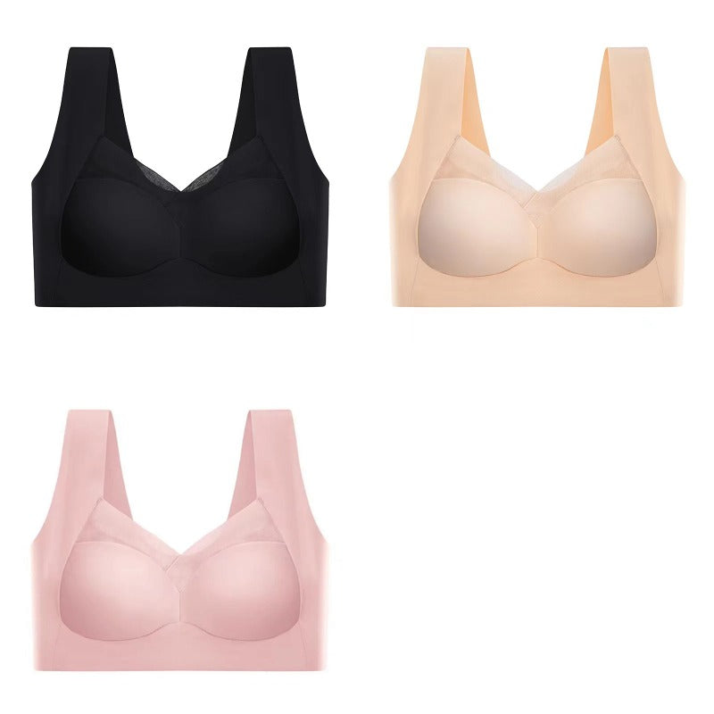 🎽[Купете 1, вземете 2 безплатно] Изключително тънък безшевен сутиен с лицеви опори от ледена коприна с голям размер