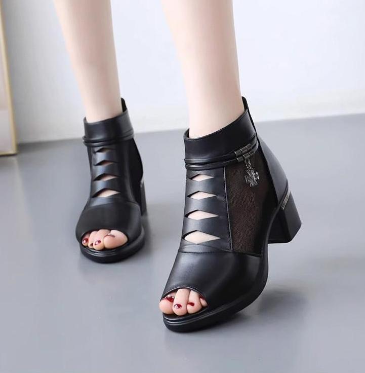 👡【35-40】Летен нов стил на 2025 г. Дишащи кухи сандали с дебел ток и рибка в устата