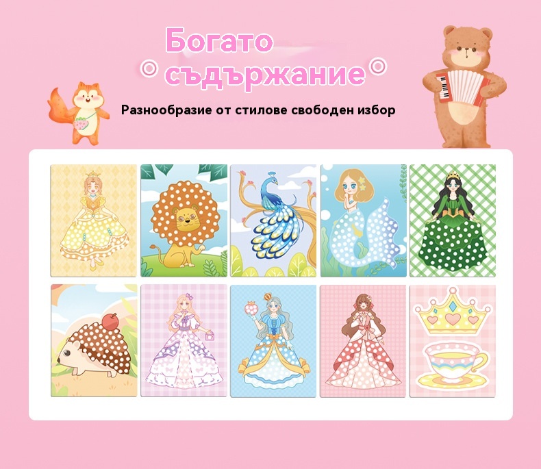 👼🧩🧸Фентъзи принцеса, ръчно рисувана книга със стикери за обличане\образователни играчки