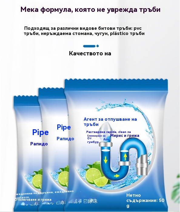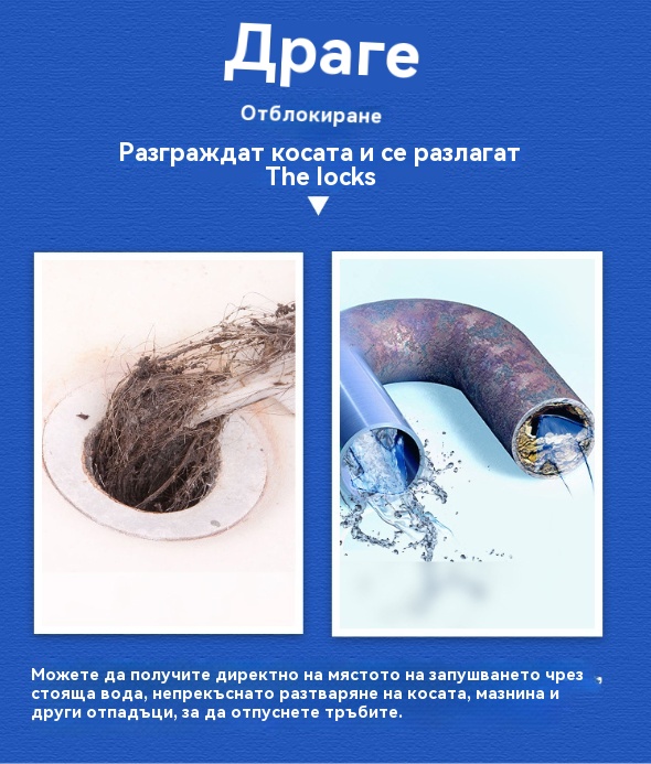 💪Мощен препарат за отпушване на канали и отстраняване на корозия по тръбите, подходящ за разтваряне на мазни петна в тоалетни, подови канали, канализация и кухни.