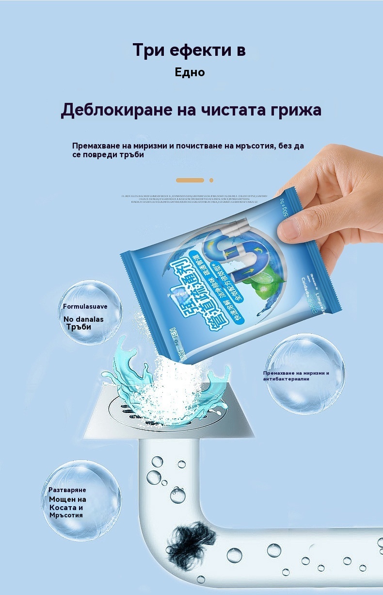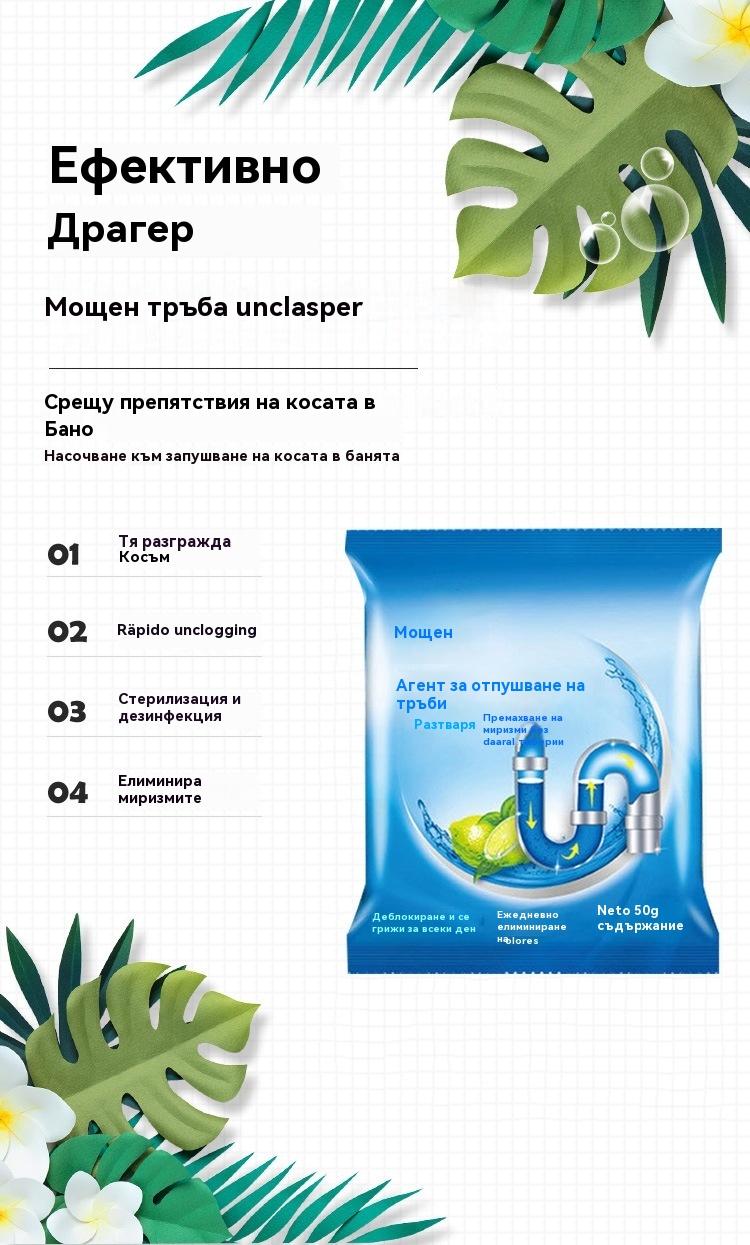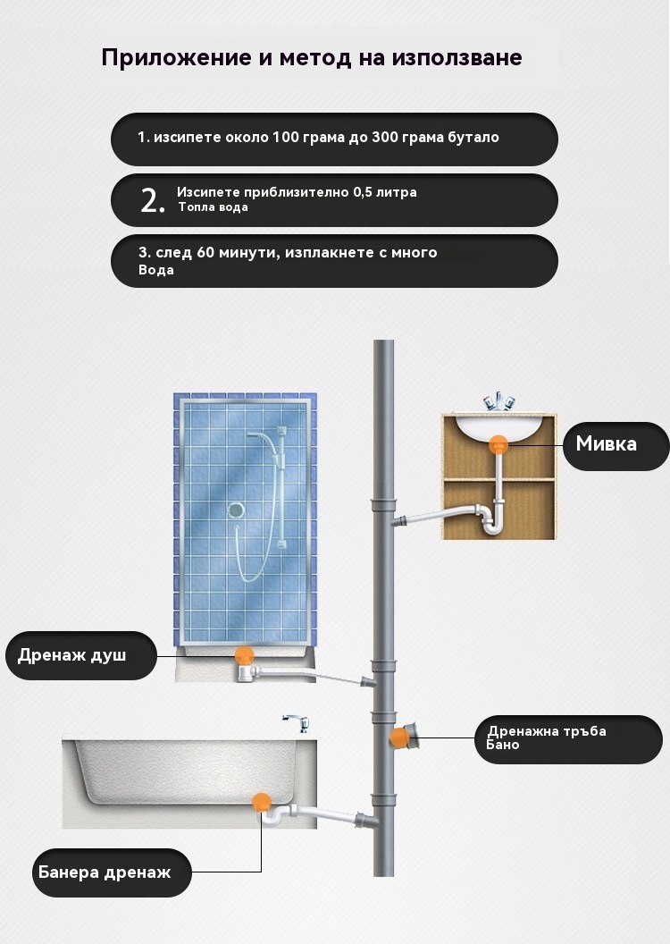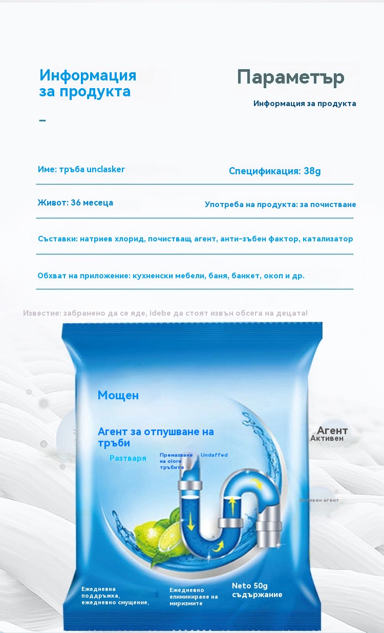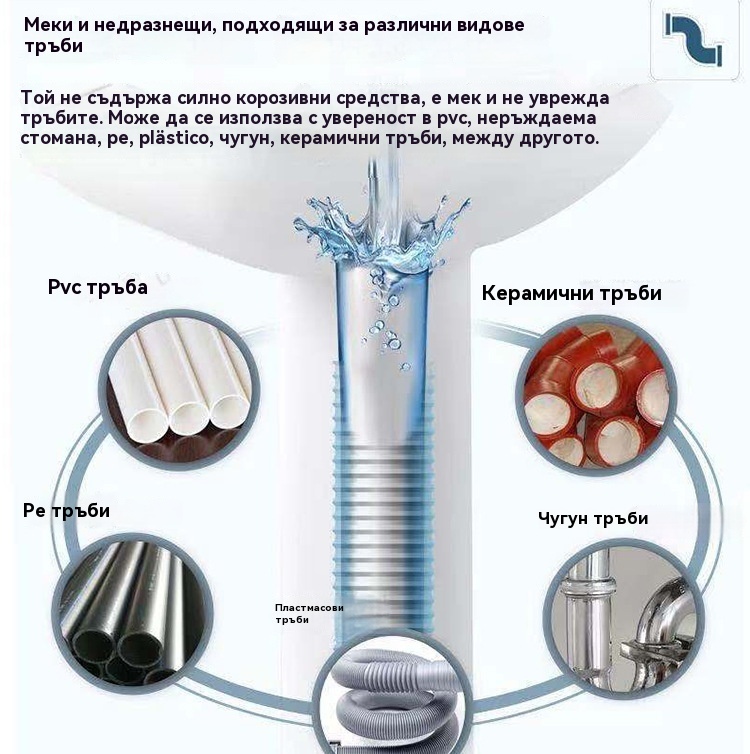 💪Мощен препарат за почистване на тръби, подходящ за разтваряне на маслени петна в тоалетни, подови сифони, канализация и кухни, за запушване и корозия