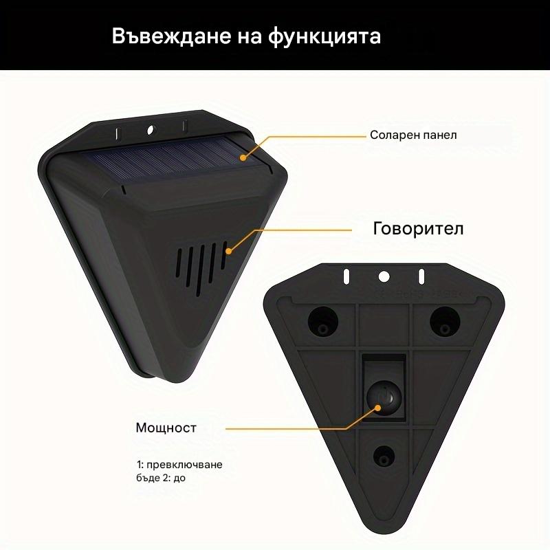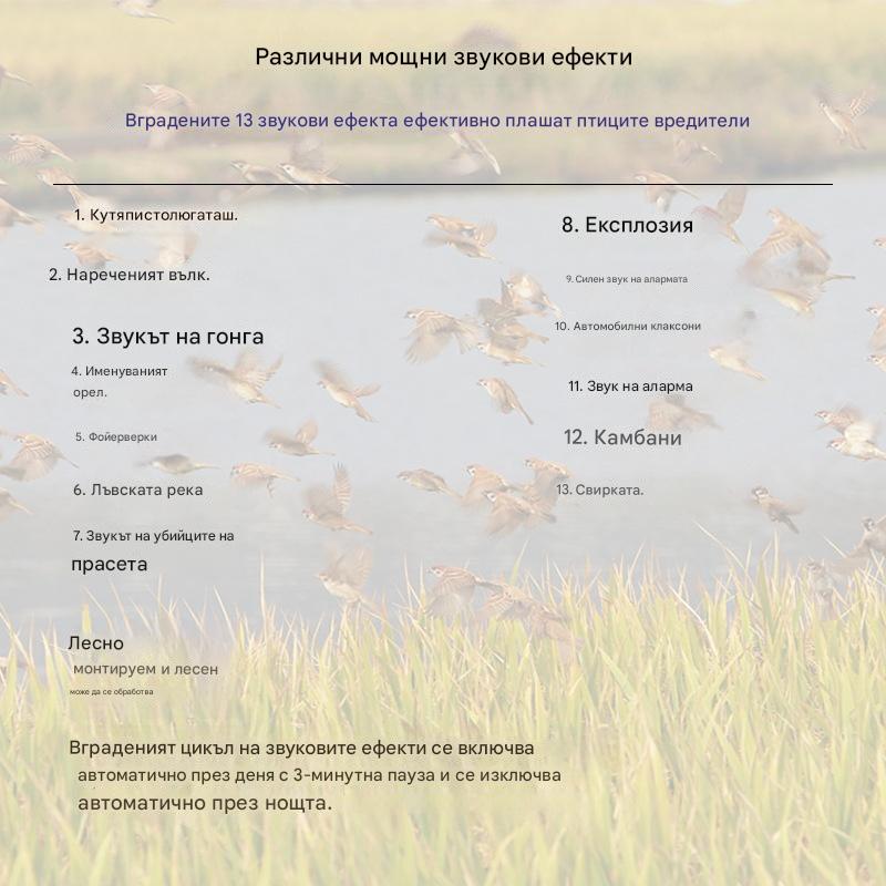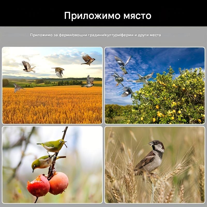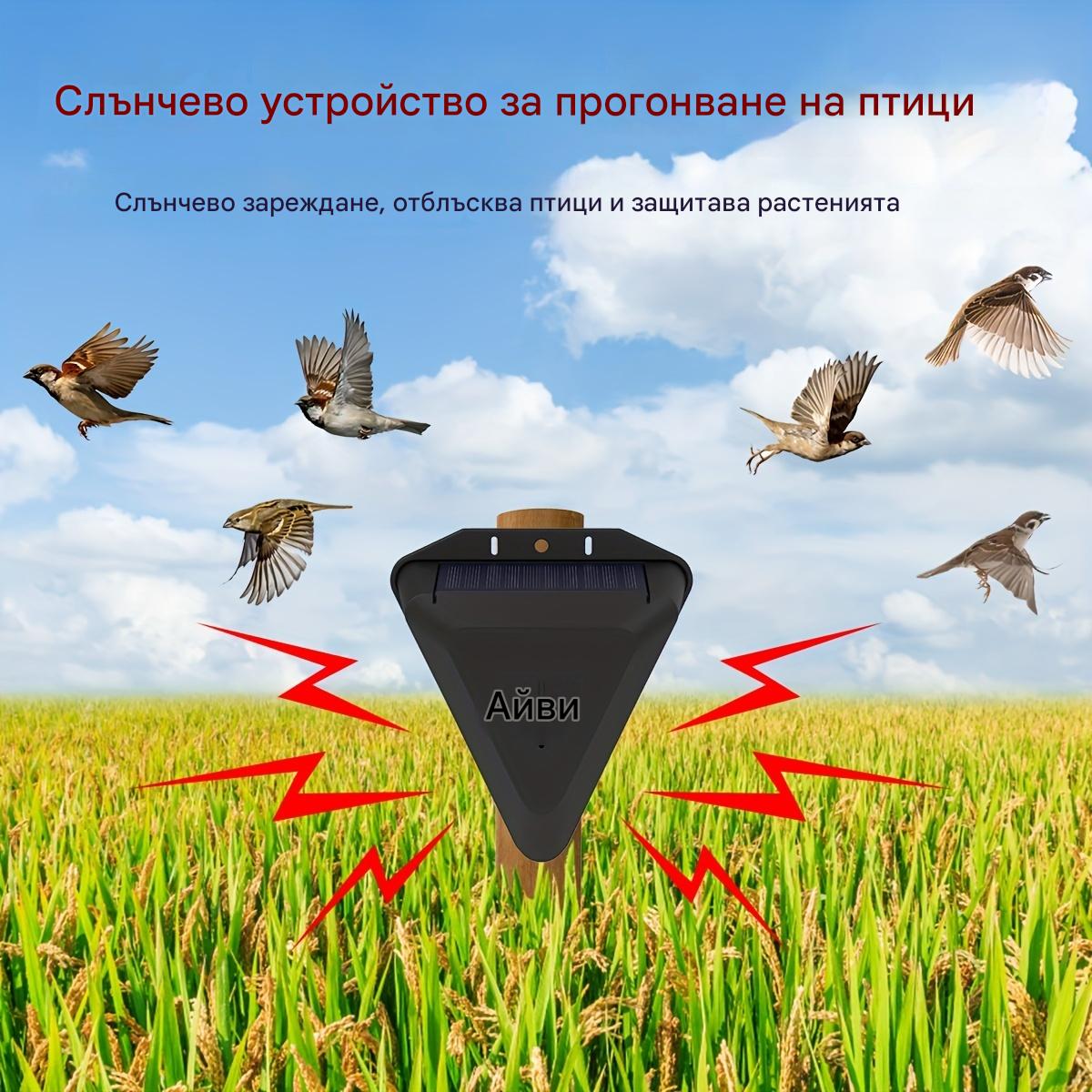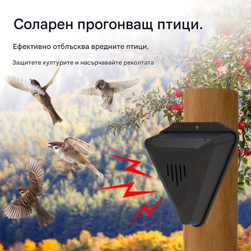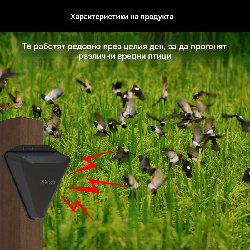 【🔥Купете 1, вземете 1 безплатно】📣Универсален соларен плашител за птици със звукова и светлинна аларма за овощни градини, рибни езера и оризови полета