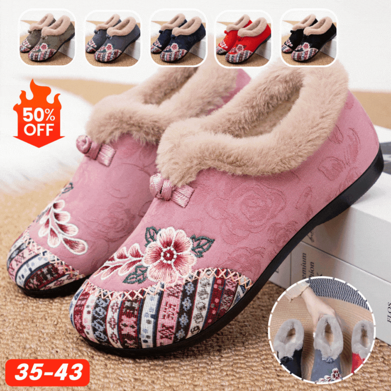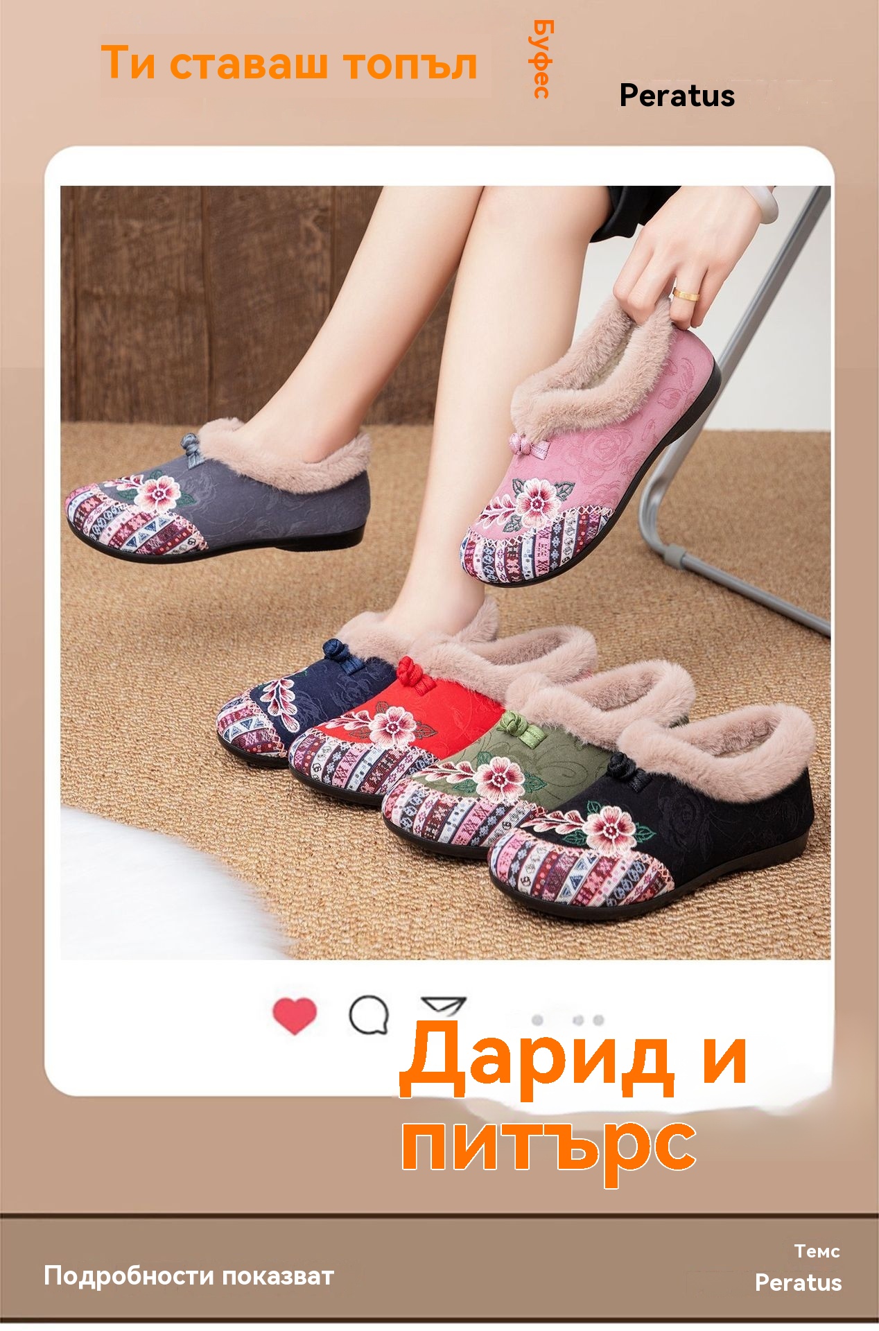 🔥【35-43】Модерни памучни ботуши, топли и плитки, бродирани