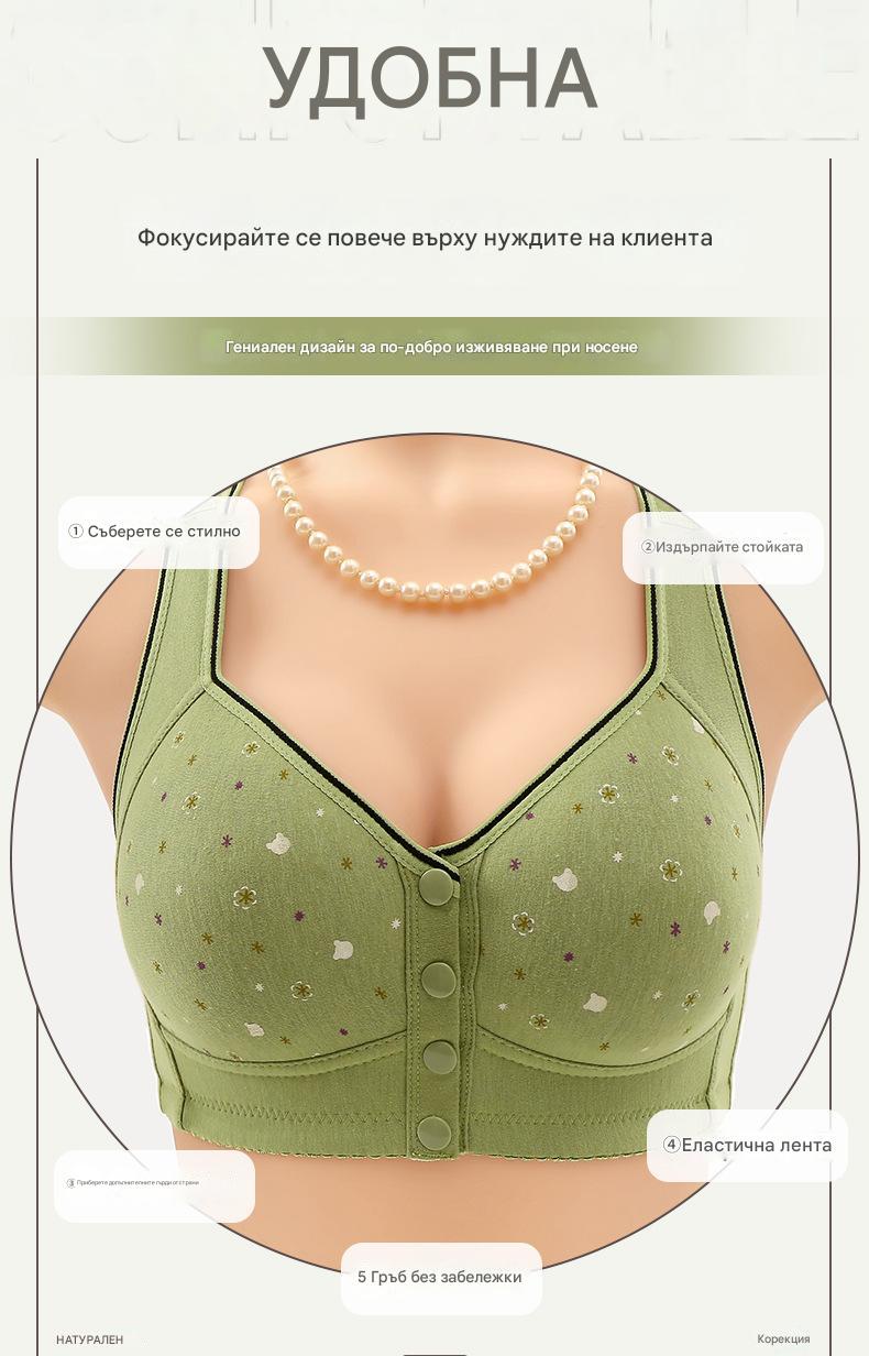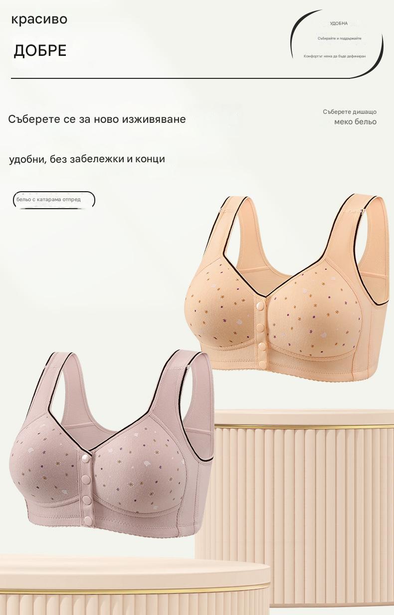 😍【Пакет от 2 части】Дамски сутиен без връзки с копчета отпред 【40-120 кг】❤️Удобен антибактериален естествен памук