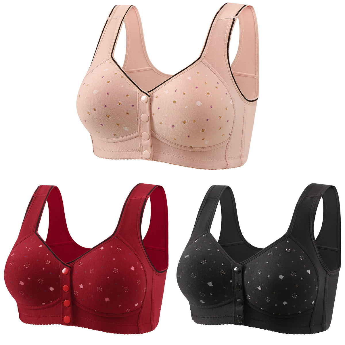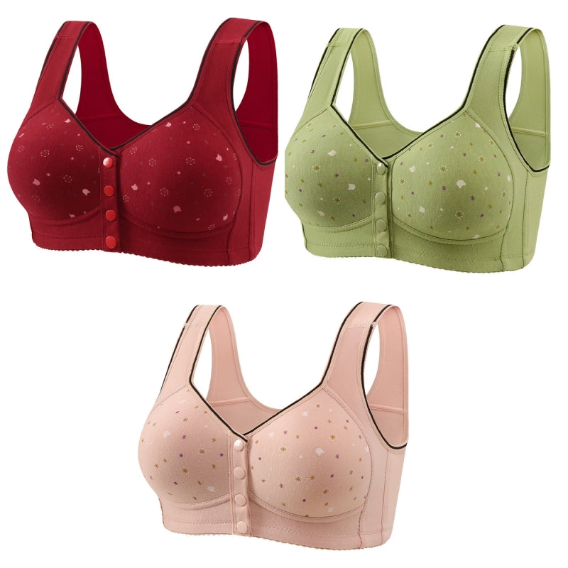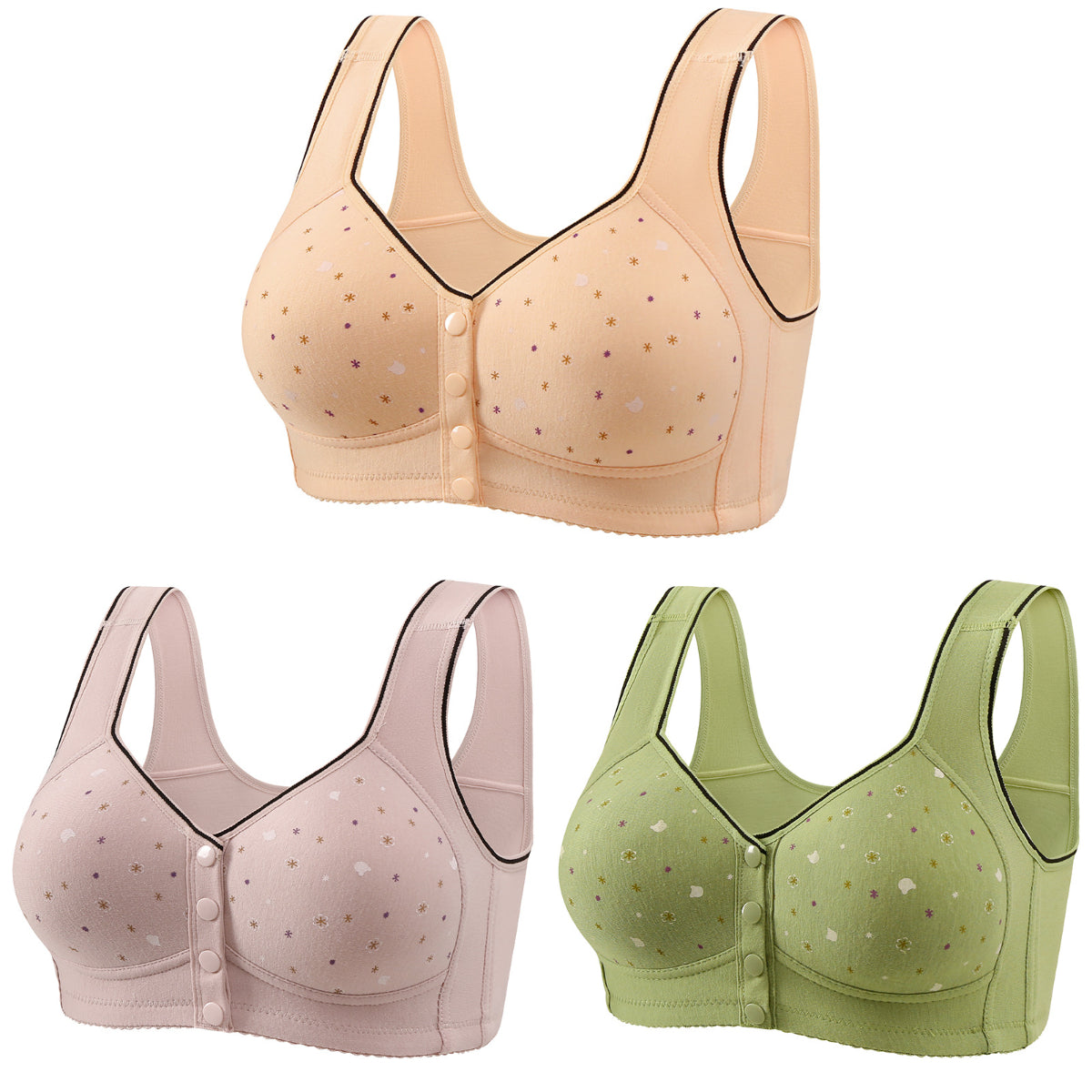 😍【Пакет от 3 части】Дамски сутиен без връзки с копчета отпред 【40-120 кг】❤️Удобен антибактериален естествен памук