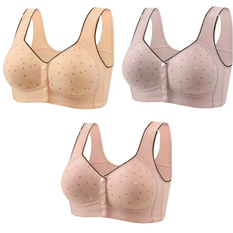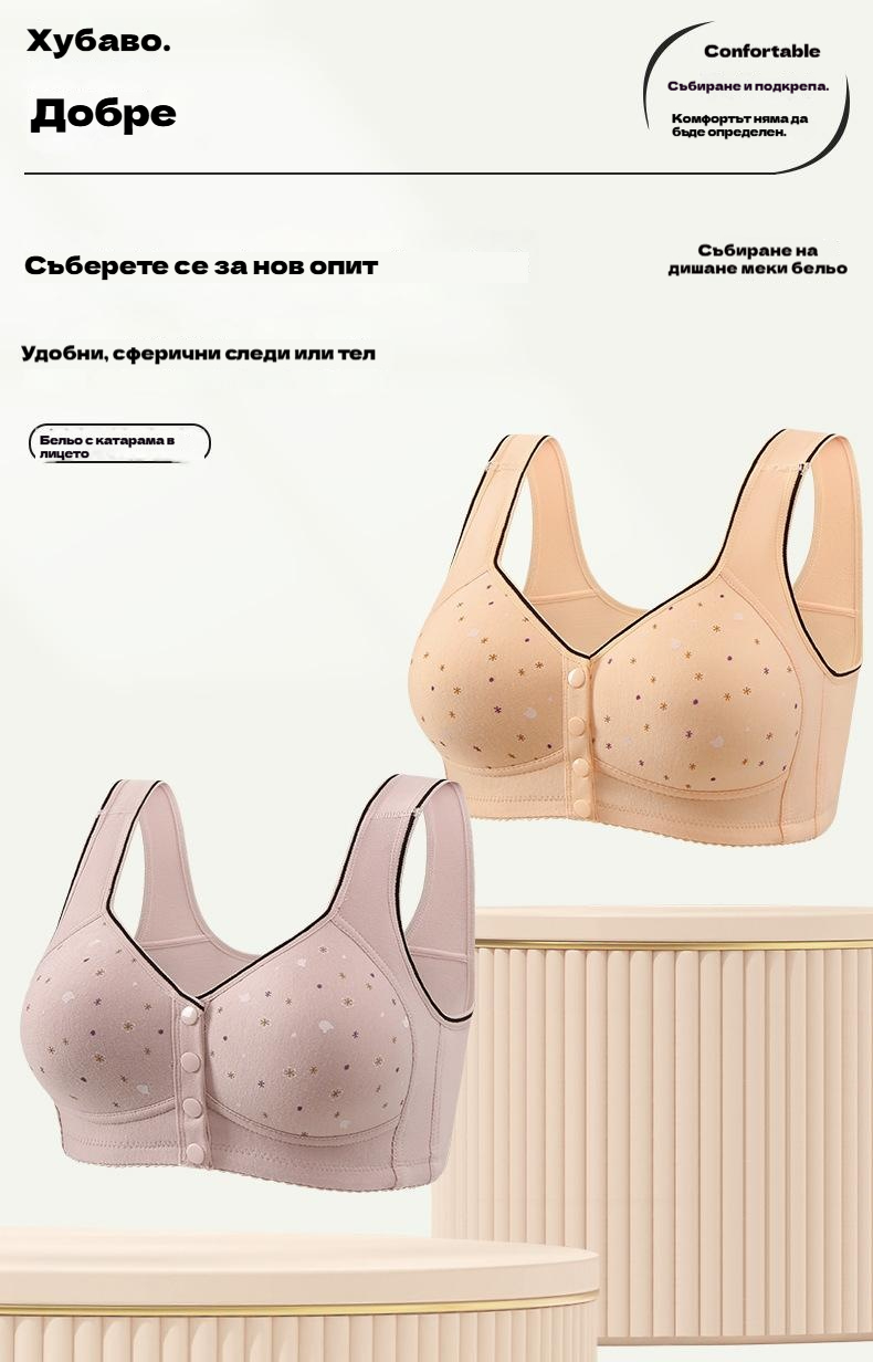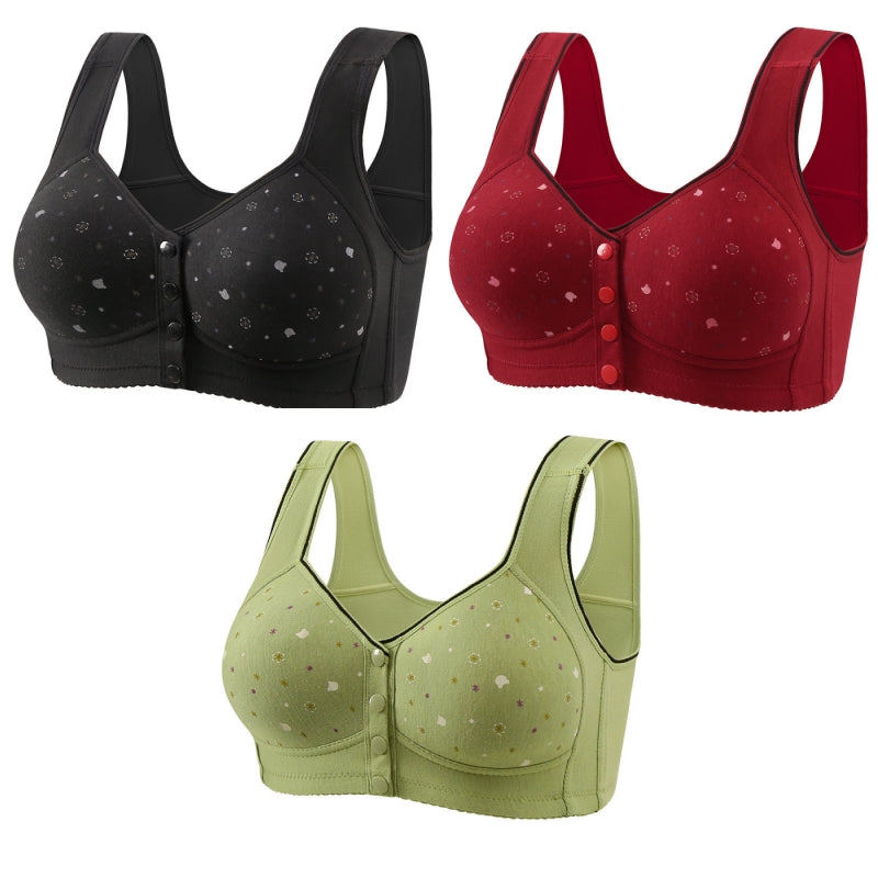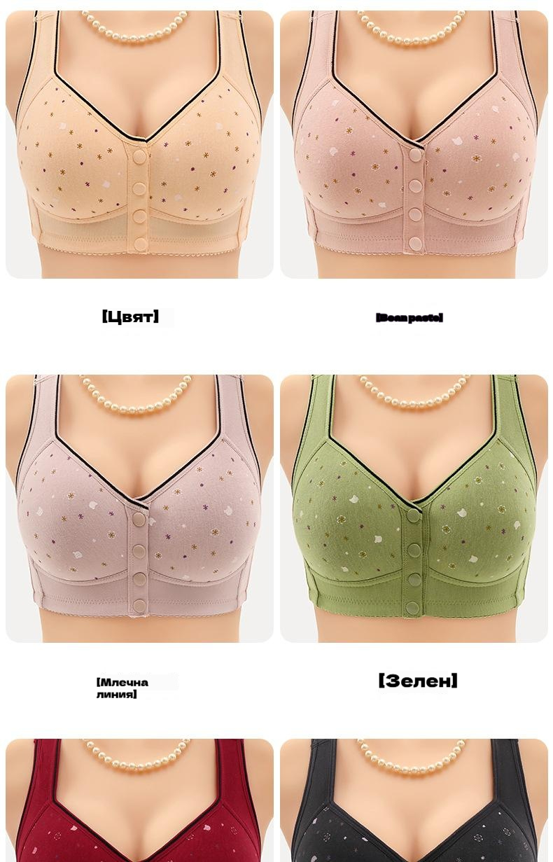 😍【Пакет от 3 части】Дамски сутиен без връзки с копчета отпред 【40-120 кг】❤️Удобен антибактериален естествен памук