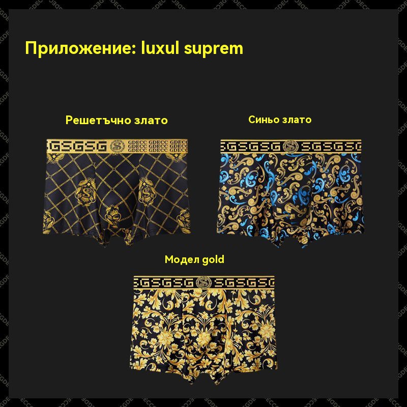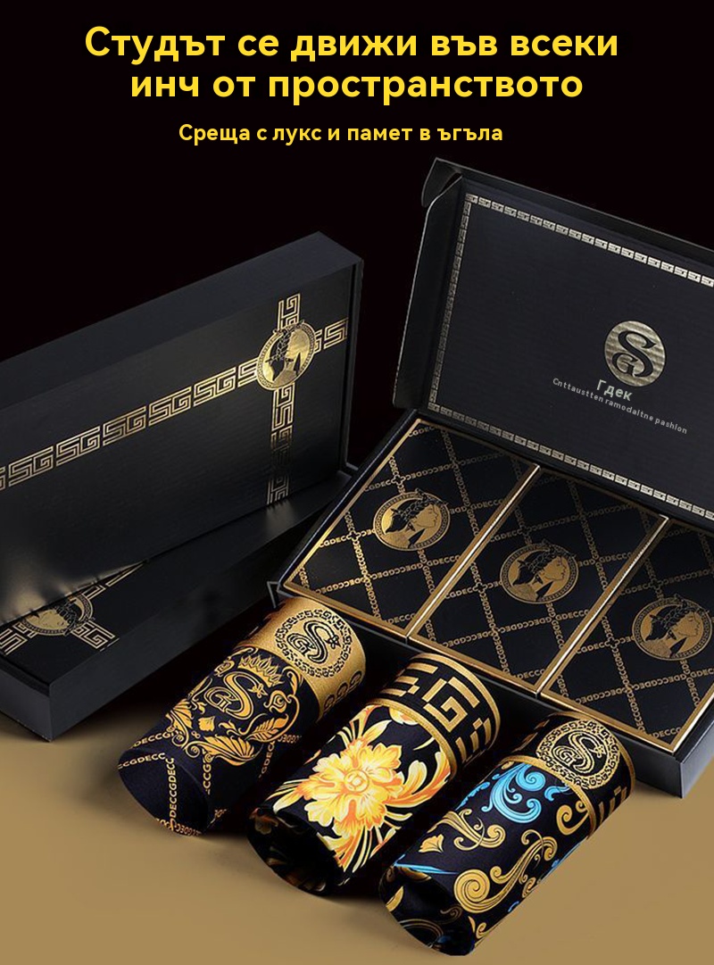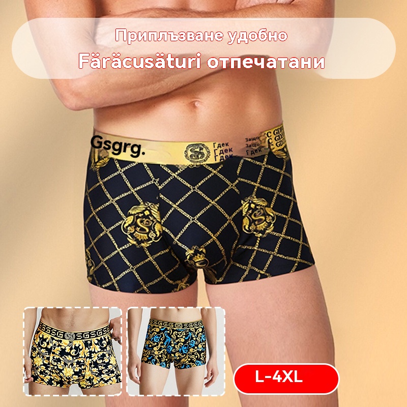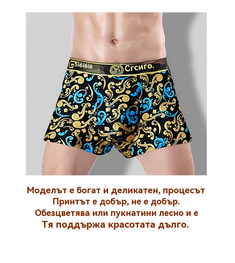 🚹✅💥1 комплект от 3 части🔥Дишащо бельо от ледена коприна за мъже, удобно бельо, безшевно, голям размер, модерен принт【40-140KG】