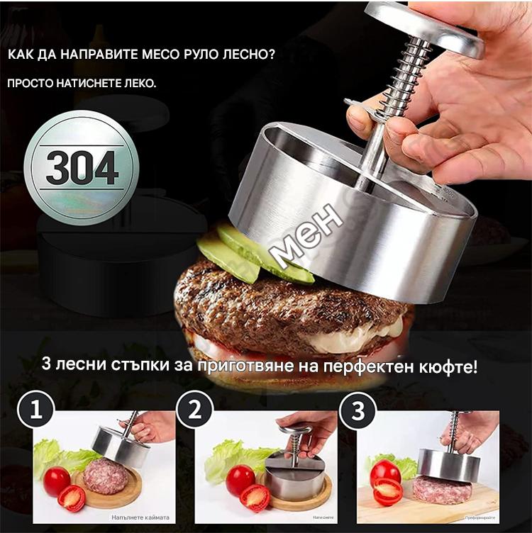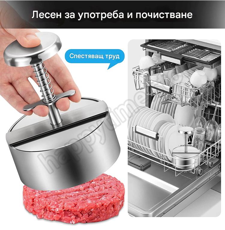 【101mm】Ръчна преса за месо за кифлички за хамбургери