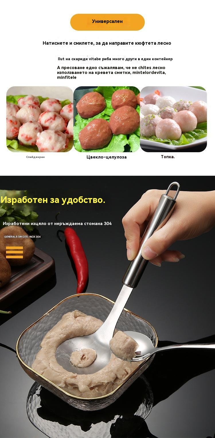 【30% ОТСТЪПКА】【3 бр.】🤤Лъжица за кюфтета от неръждаема стомана, ръчно изработена плъзгаща се лъжичка със скариди и магданоз