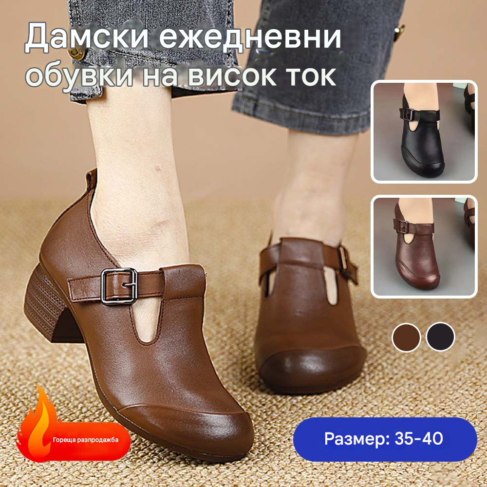 【35-40】2025 Нови нови обувки със среден ток от кравешка кожа за жени плюс размер