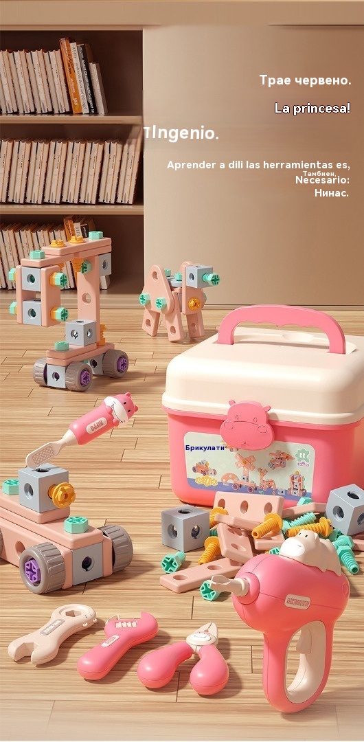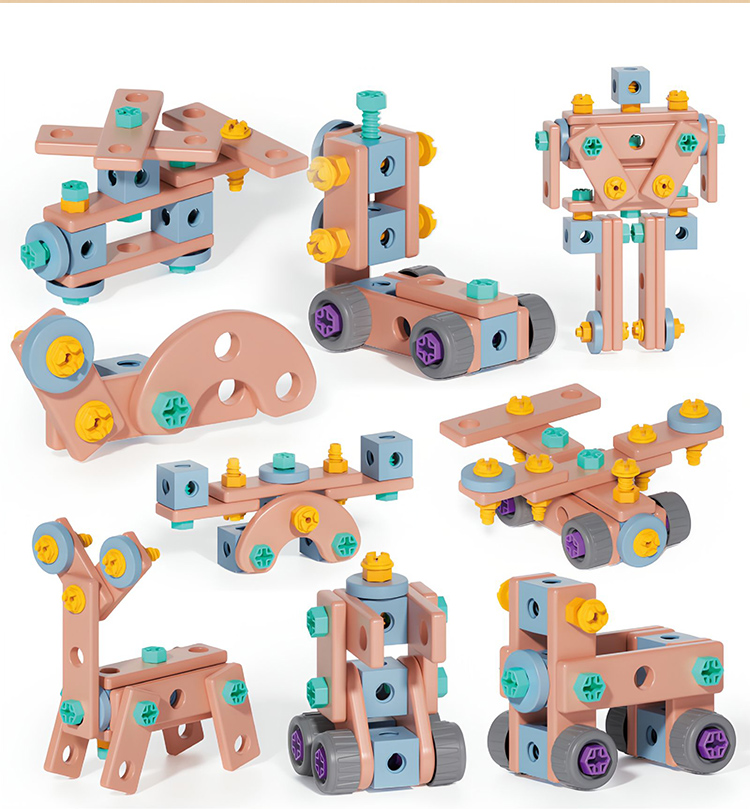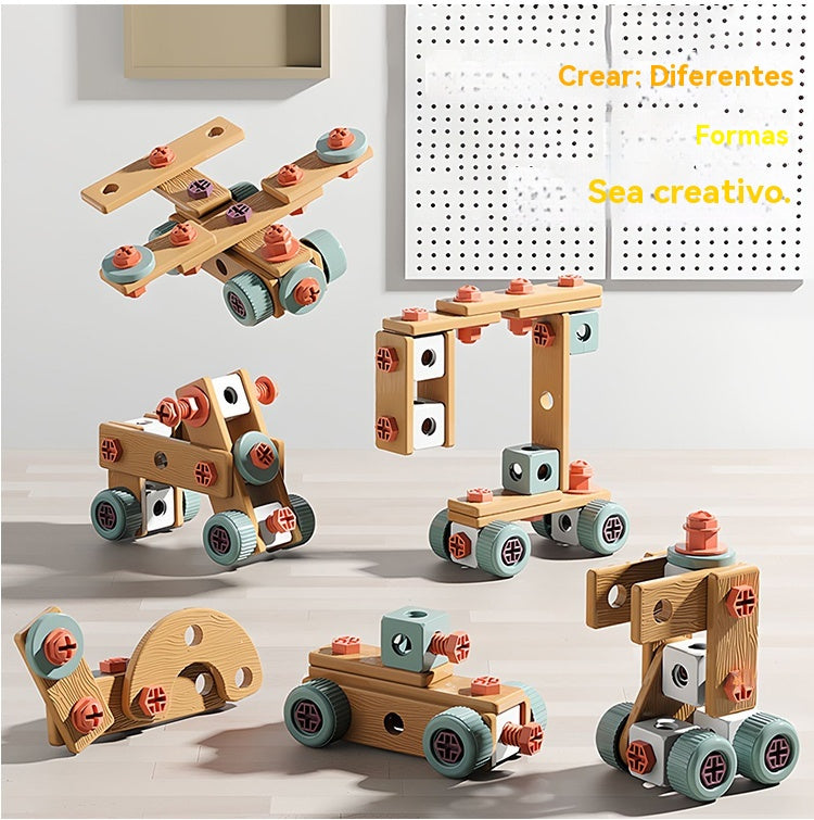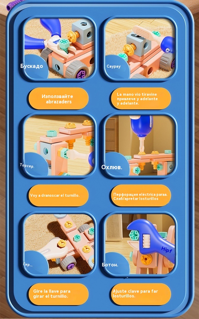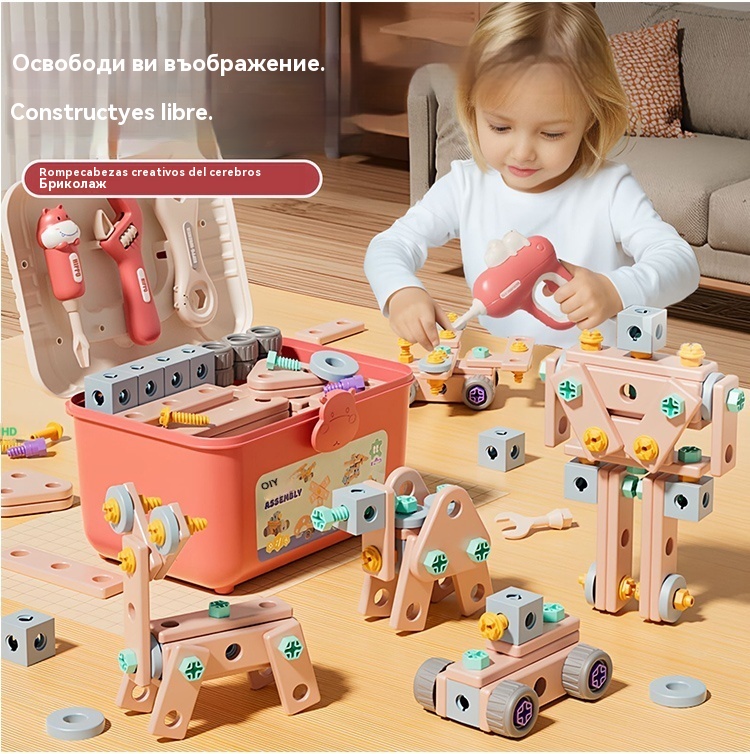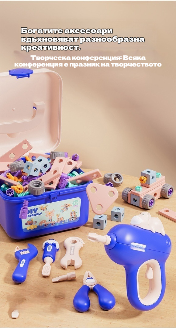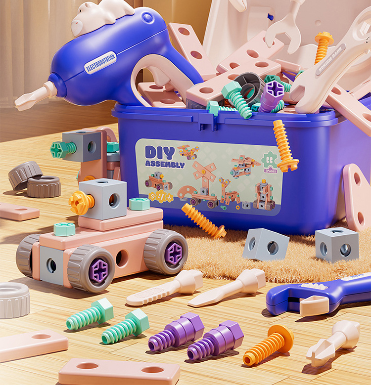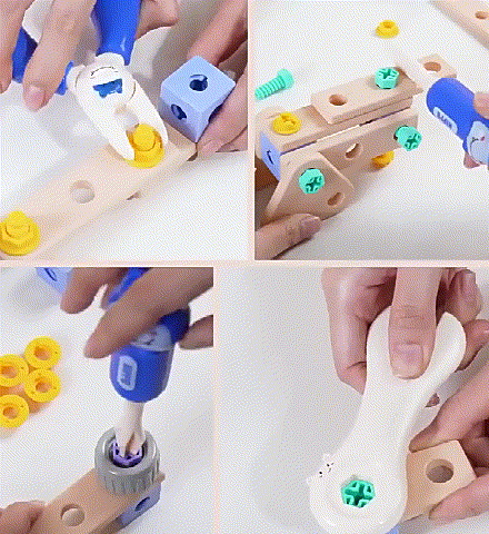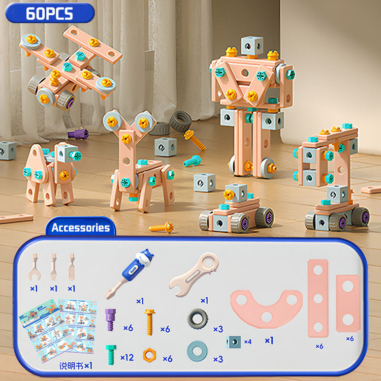 【60 части】🌈Направи си сам играчки с винтове: Образователни играчки с прости строителни блокове, играчки, кутии с инструменти и електрически бормашини